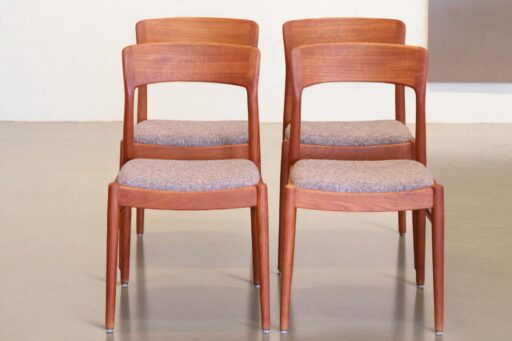 En stilren stol i gyllenbrun teak formgiven av Henning för KS Møbler i Danmark. Organiskt