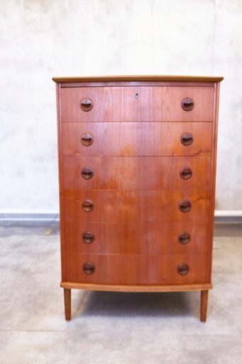 Otroligt välarbetat dansk byrå i teak med sex rymliga lådor. Byrån är uppbyggd som ett