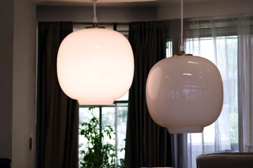 Lampor i modell Marina samt Mandarin designade Michael Bang för Holmegaard i Danmark. Lampan är