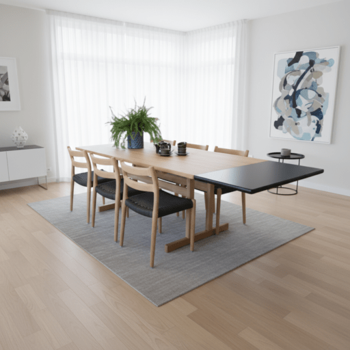 Ett flexibelt och utsökt vackert matbord i teak formgivet av Gunni Omann för Omann Jun
