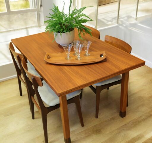 Danskt stilrent matbord i teak, med en underbart kaxig attityd! Ett riktigt snyggt danskt matbod