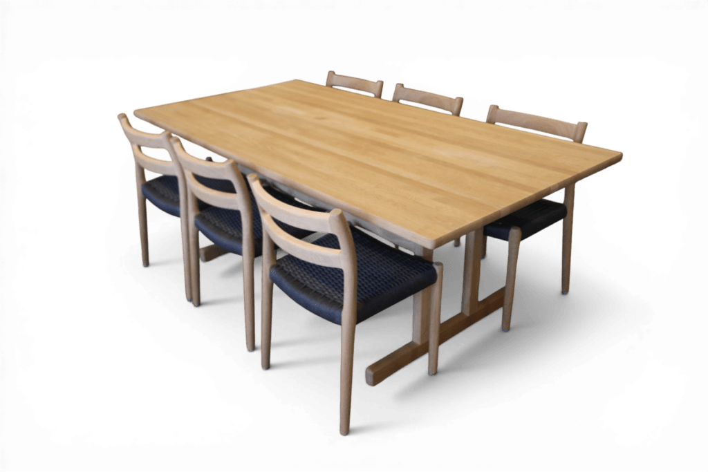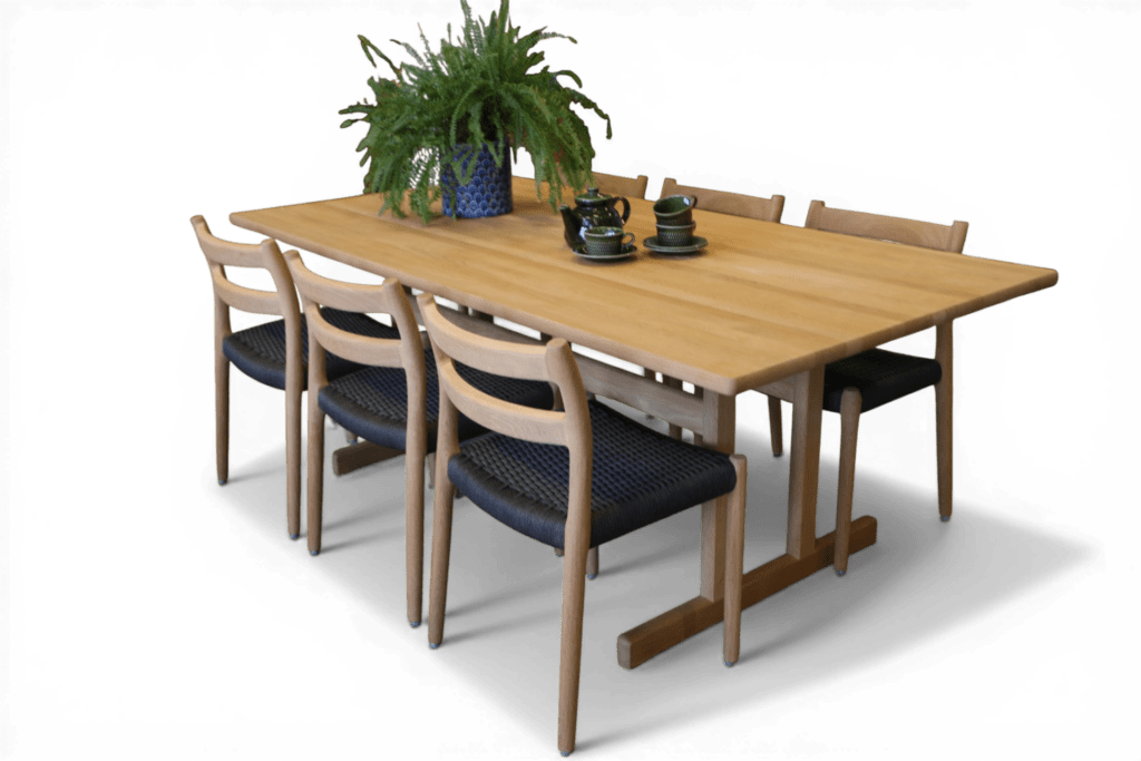 Formspråket är tydligt inspirerat av den amerikanska shakerstilen, något som återkommer i många av Mogensens möbler för Fredericia Furniture. Här finns en självklar enkelhet, ett genomtänkt uttryck och en hållbarhet som verkligen står sig över tid.