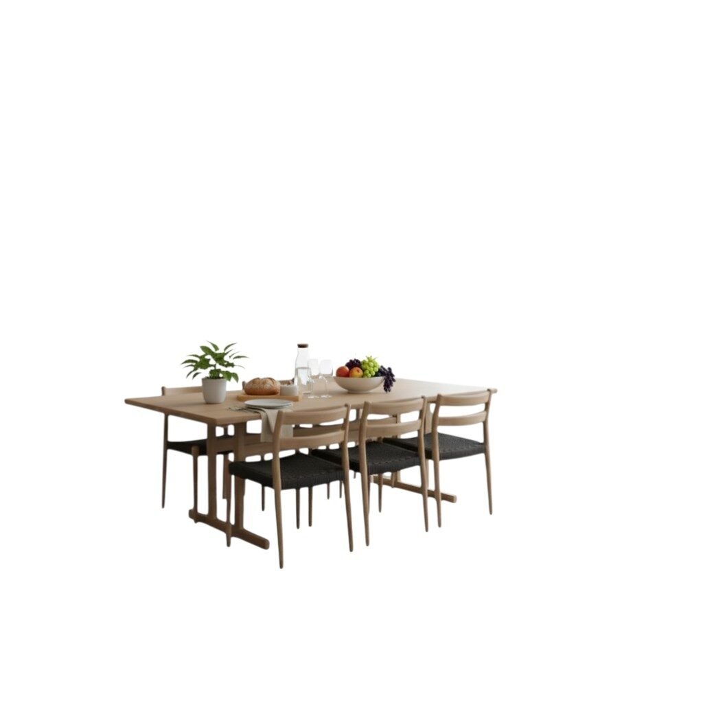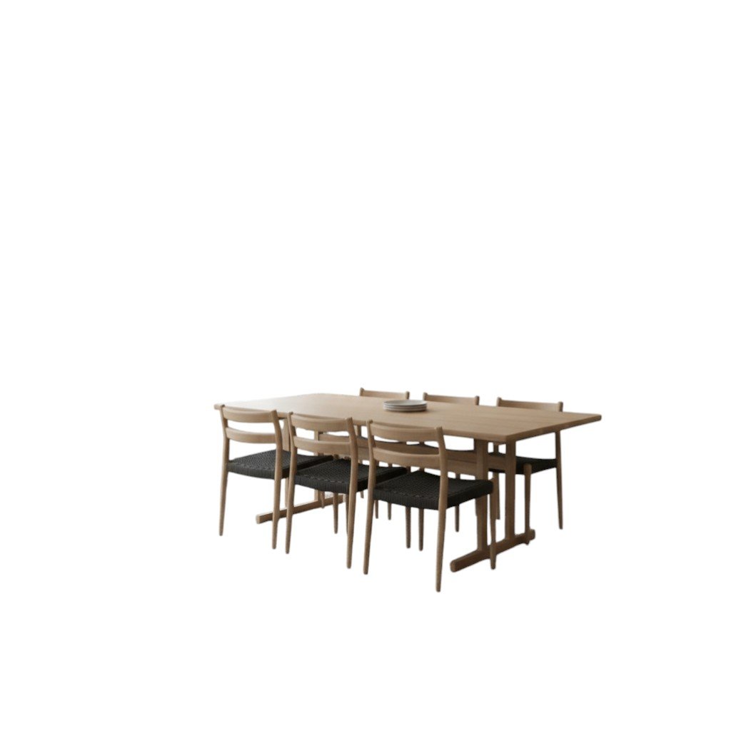 Bordet är i en tidlös modell och ritades redan på 1950 talet av designern Børge Mogensen och är ett fantastiskt exempel på hur funktion och estetik möts i perfekt harmoni. De raka linjerna och den minimalistiska formen gör bordet lika självklart i ett modernt hem som i en mer klassisk miljö.