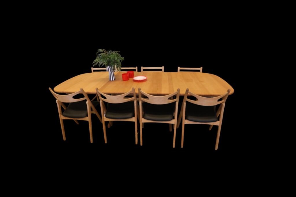 Dansk matbord i massiv ek. 161x103x72+2×50 cm