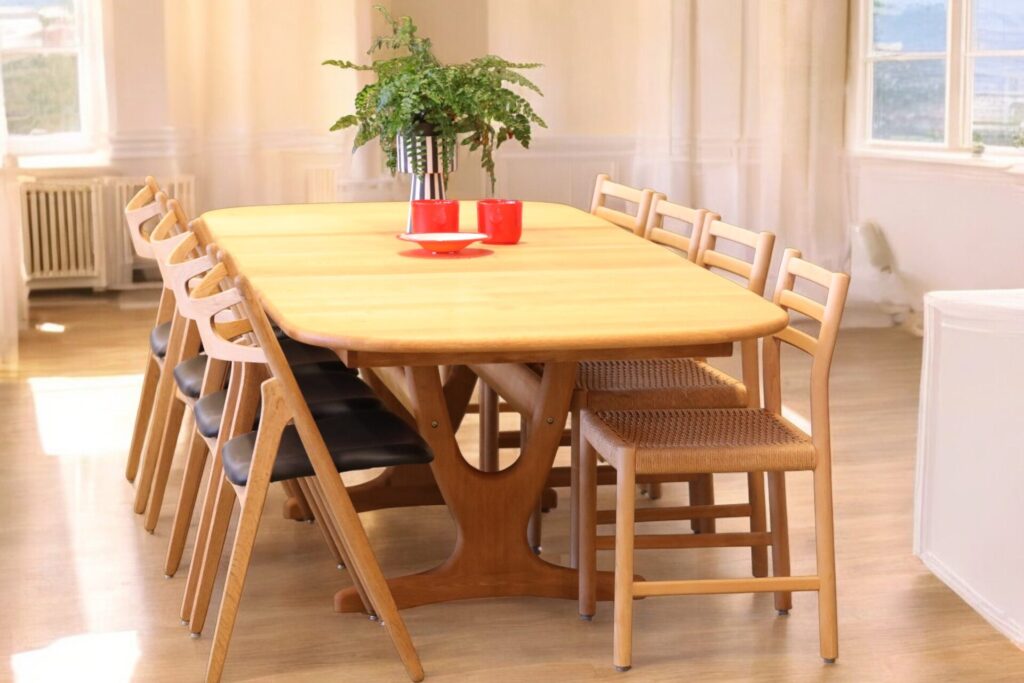 Bordet har ett bra djup som gör det enkelt att duka upp för middagar. Med iläggsskivorna i finns det plats för tio till tolv sittplatser och redan i grundutförandet är det plats för minst sex sittplatser. Det går utmärkt att använda en eller båda skivor ihop, allt efter behov.