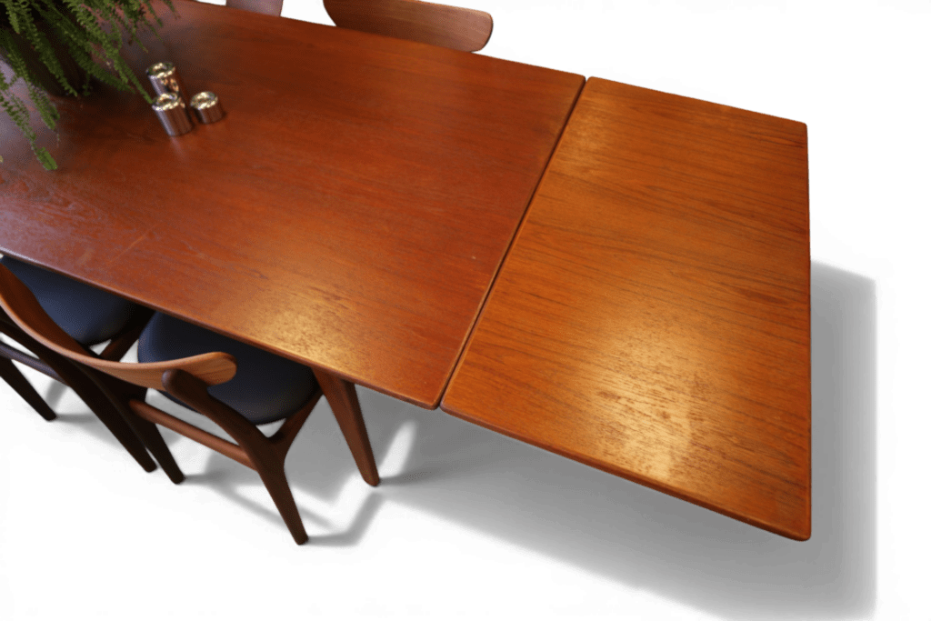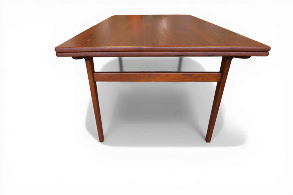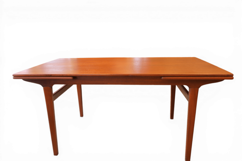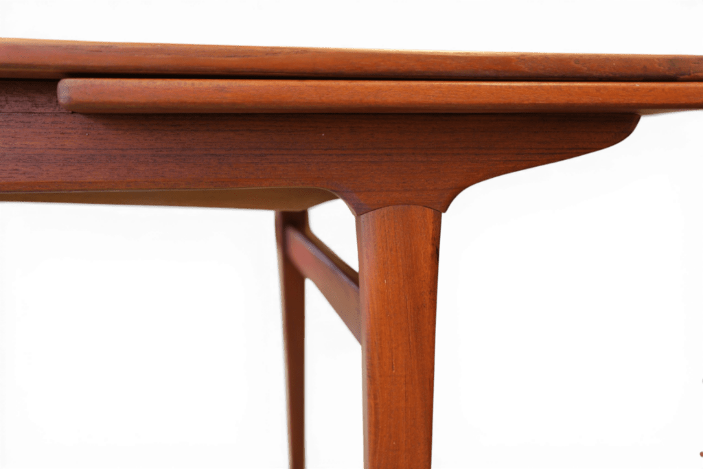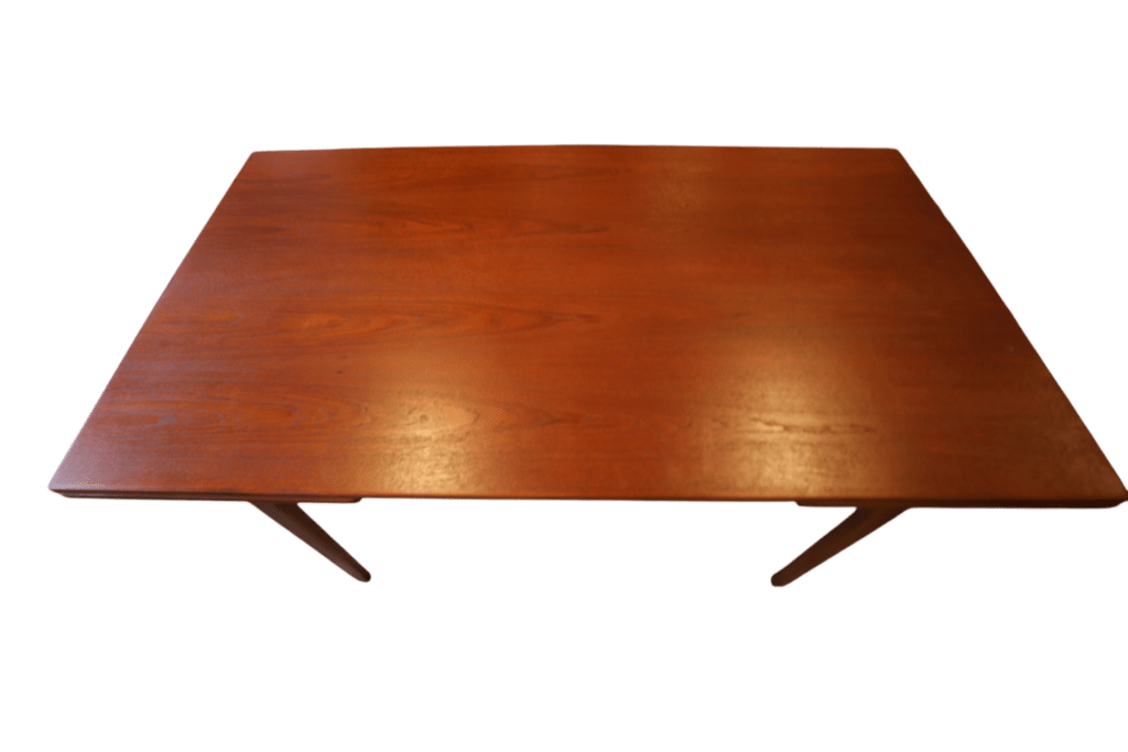 Ett rymligt och mycket vackert matbord i teak som är i en mustig ton. Bordet är tillverkat i Danmark, med en tidlös form som passar lika fint i det moderna hemmet som i den mer klassiska miljön.