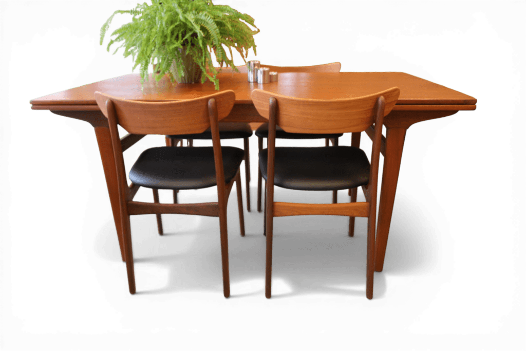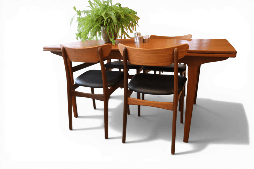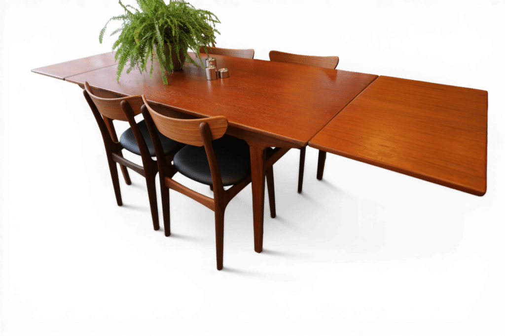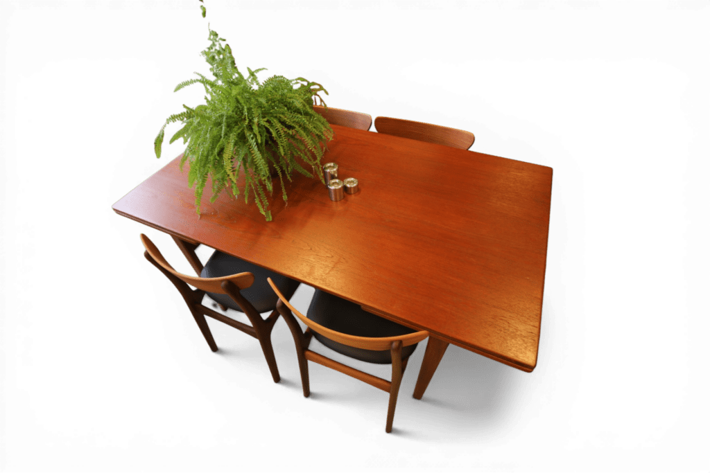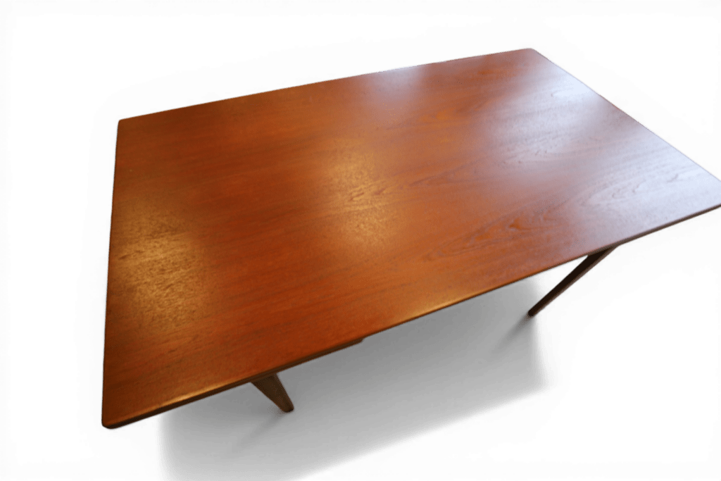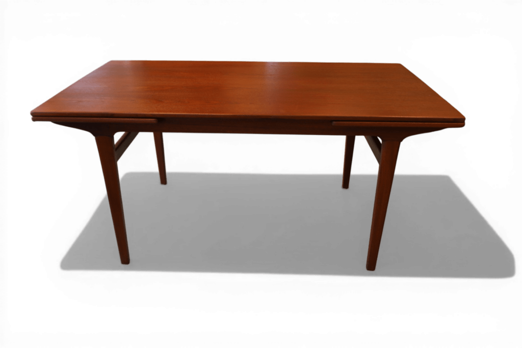 Ett rymligt och mycket vackert matbord i teak som är i en mustig ton. Bordet är tillverkat i Danmark, med en tidlös form som passar lika fint i det moderna hemmet som i den mer klassiska miljön.