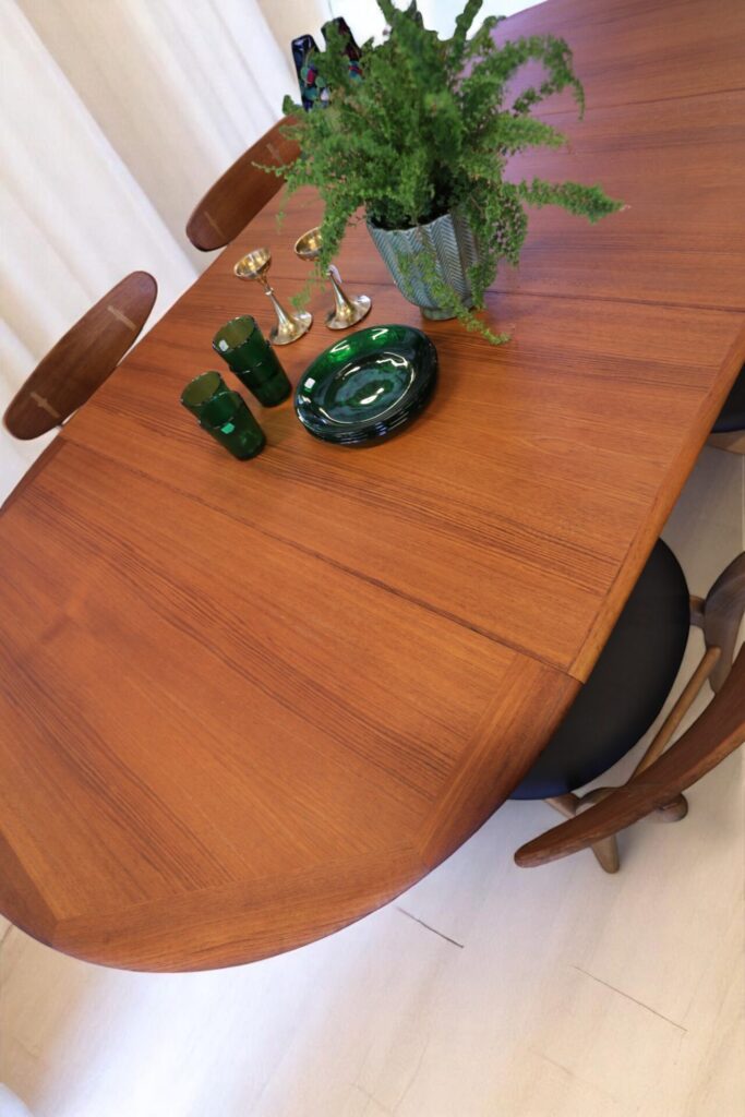 Bordet har dubbla iläggsskivor med möjlighet att använda en eller båda skivorna i bordet, allt efter ditt behov. Med skivorna på plats finns det gott om utrymme för åtta-tio sittplatser.