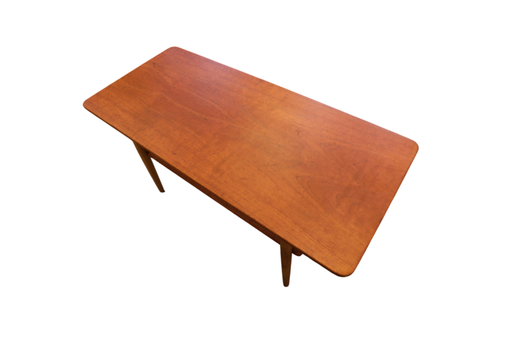 Soffbordet står på runda avsmalnande ben i ek som är kaxigt snedställda som ger en dynamisk och livfull känsla till möbeln. Benställningen har dessutom ett typiskt danskt uttryck som återspeglar den skandinaviska designtraditionen.