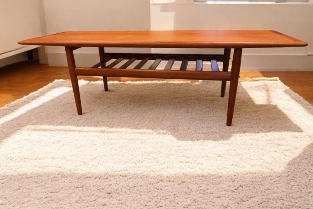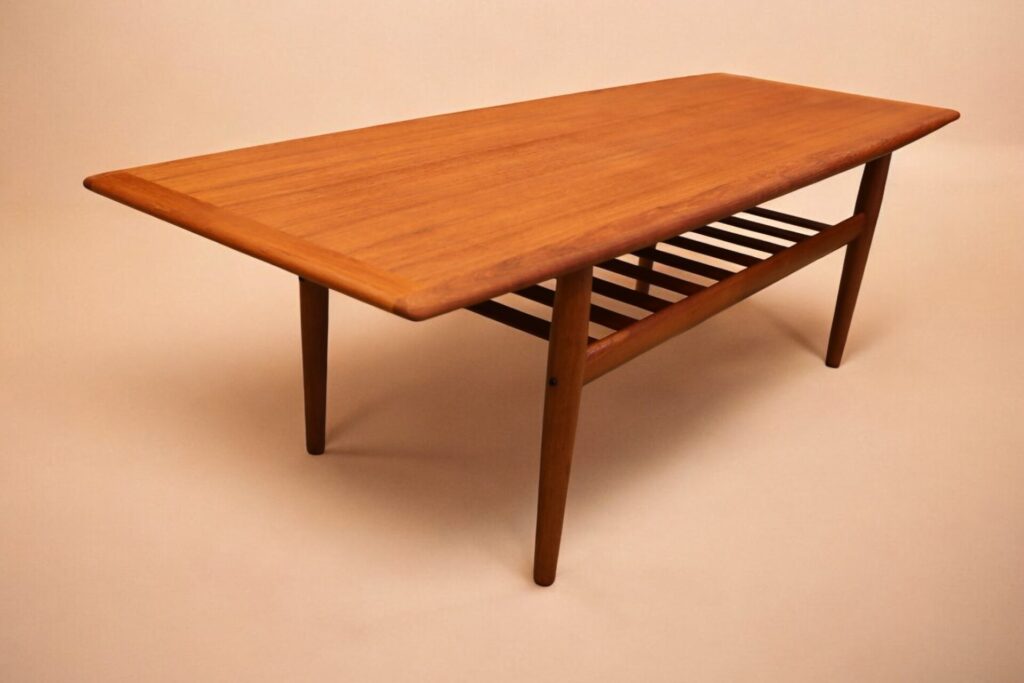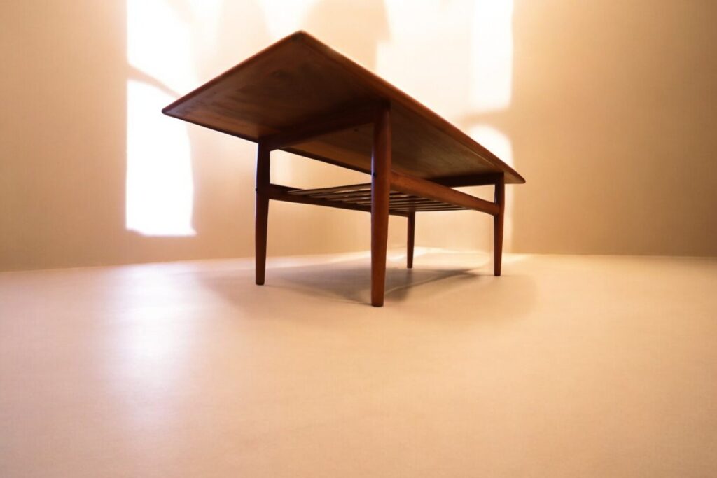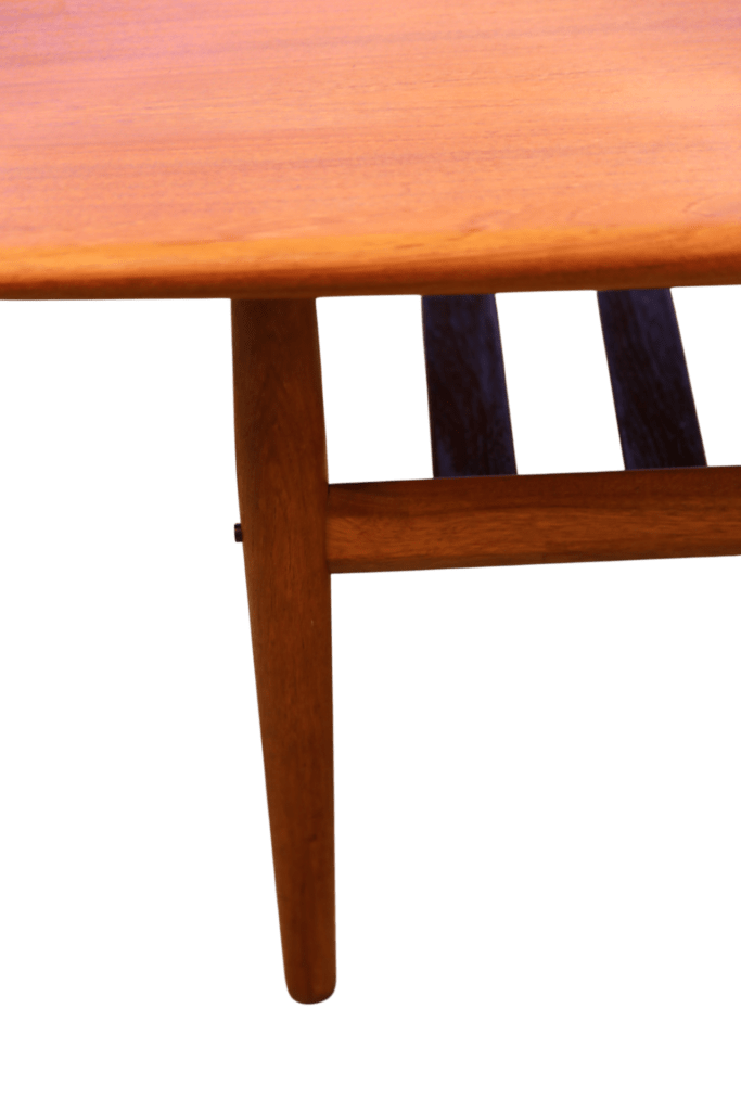 Ett danskt stilrent soffbord i teak, formgivet av den berömda designern Grete Jalk för Glostrup Møbelfabrik i Danmark. Bordet är mycket välbyggt och stadigt, vilket gör det till en utmärkt möbel för att komplettera var hems vardagsrum.