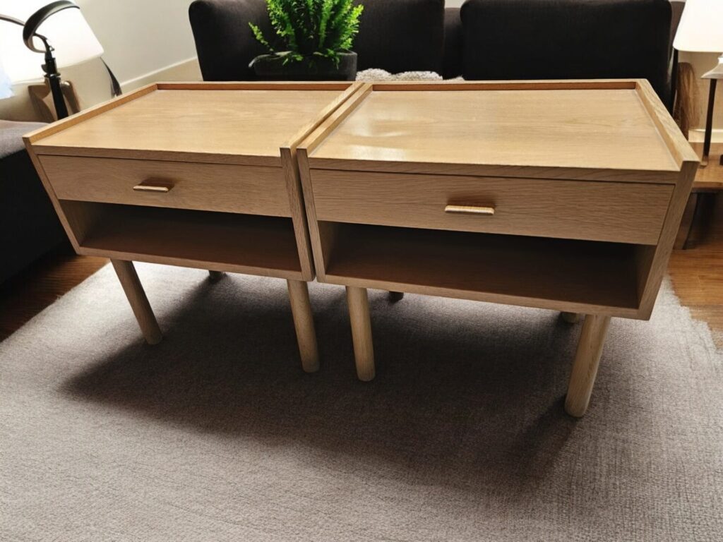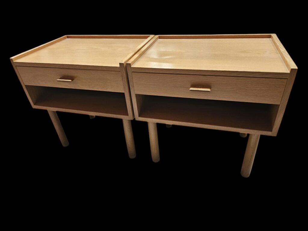 Paret ikoniska nattduksbord i ek , som är vackert formgivna av den världsberömda designern Hans J. Wegner för företaget Getama i Danmark, är inte bara funktionella möbler utan också fantastiska exempel på skandinavisk designtradition.