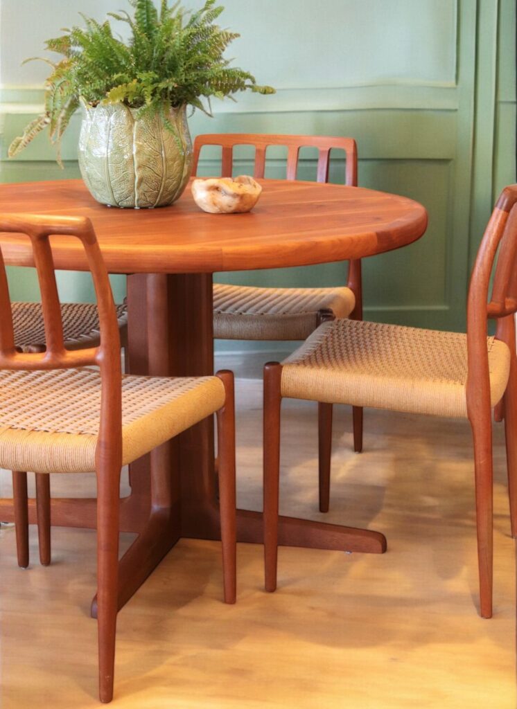 Ett fantastiskt vackert matbord tillverkat av Korup Danmark. Bordet är i teak med en gyllene ton med mycket fi ådring!