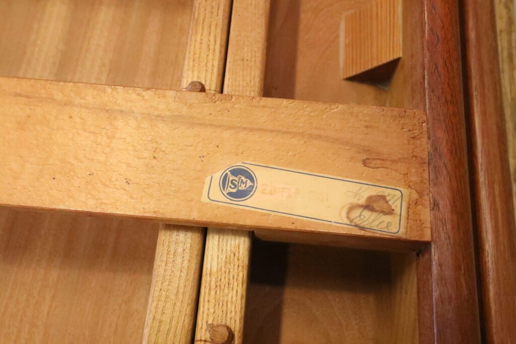 Bordets ben är ovala och något snedställda, vilket bidrar till dess vackra profil. Vid transport är det enkelt att demontera benen, vilket gör förflyttning och hantering smidig. Bordet är etikettmärkt under bordsskivan.