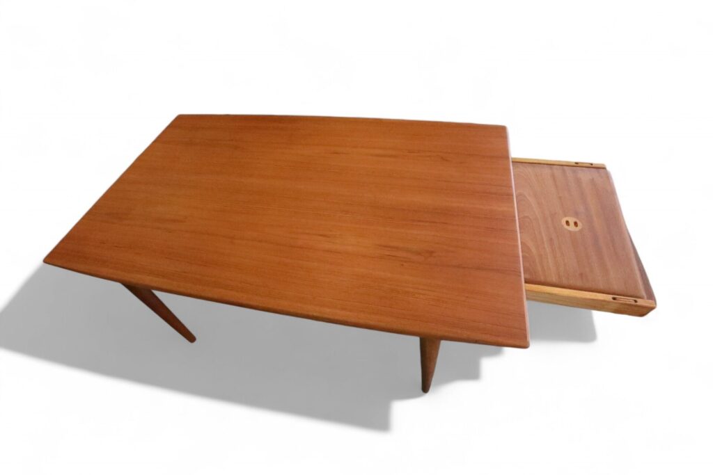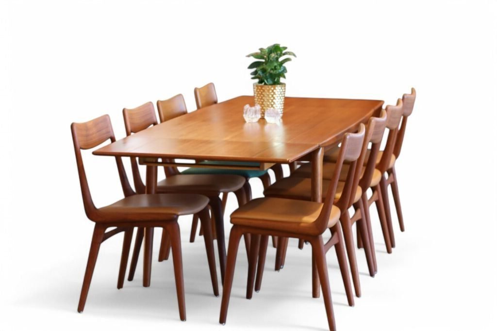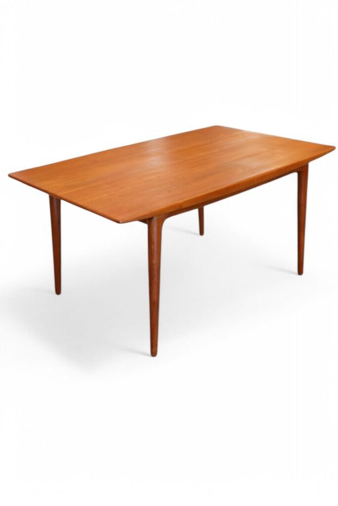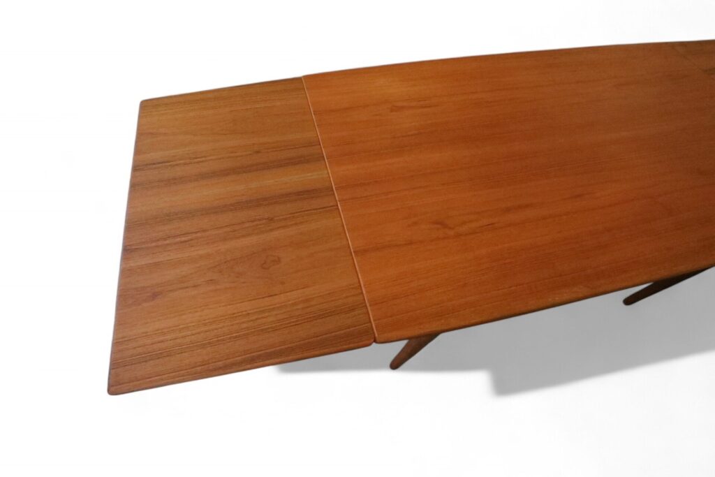 Ett fantastiskt matbord, modell 371 Boomerang, som är ett verkligt mästerverk av designern Alfred Christensen och tillverkat av Slagelse Møbelværk i Danmark. Med sitt eleganta och funktionella utförande utstrålar bordet både stil och hantverksskicklighet.