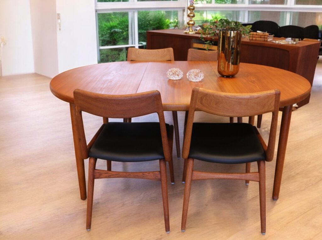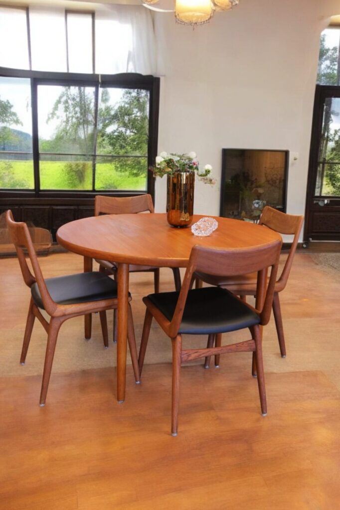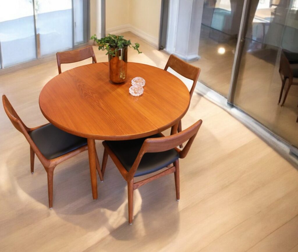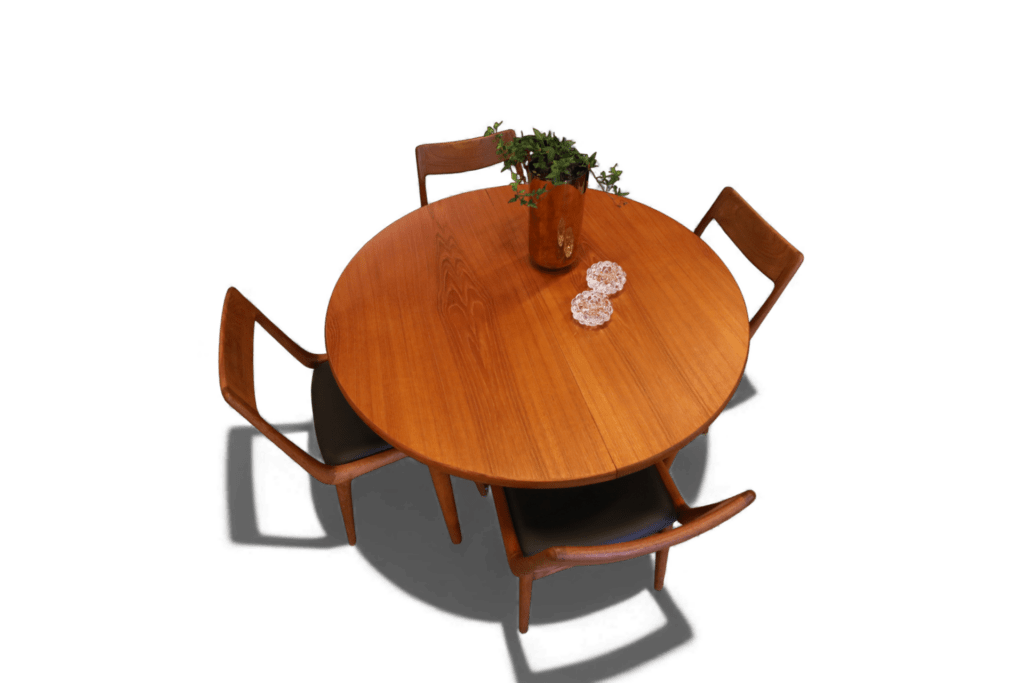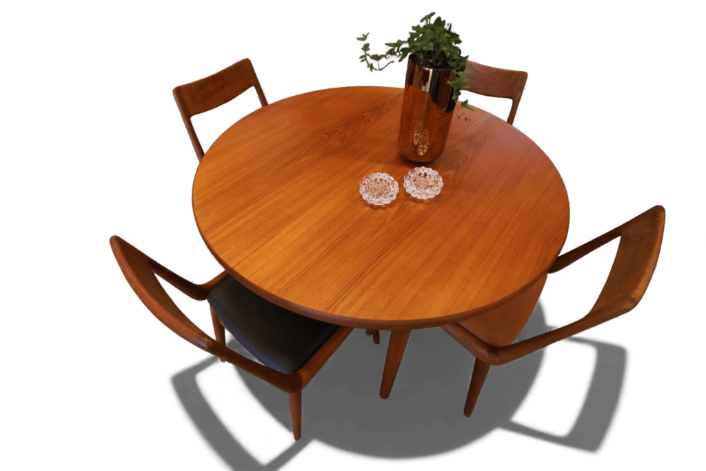 Danskt runt matbord i en mycket stilren och modern modell som passar perfekt in i de flesta hem och som verkligen kan förvandla din matplats till en trivsam och inbjudande miljö! Det är ett utmärkt val för både vardagligt bruk och festliga tillfällen med en känsla av elegans och stil som många hem söker efter.