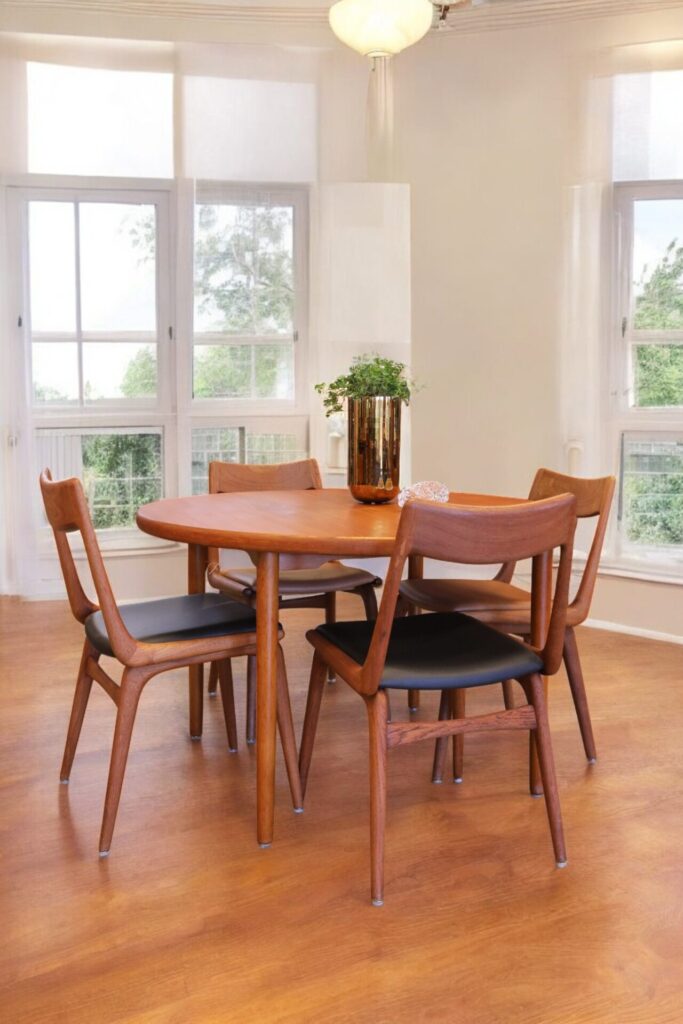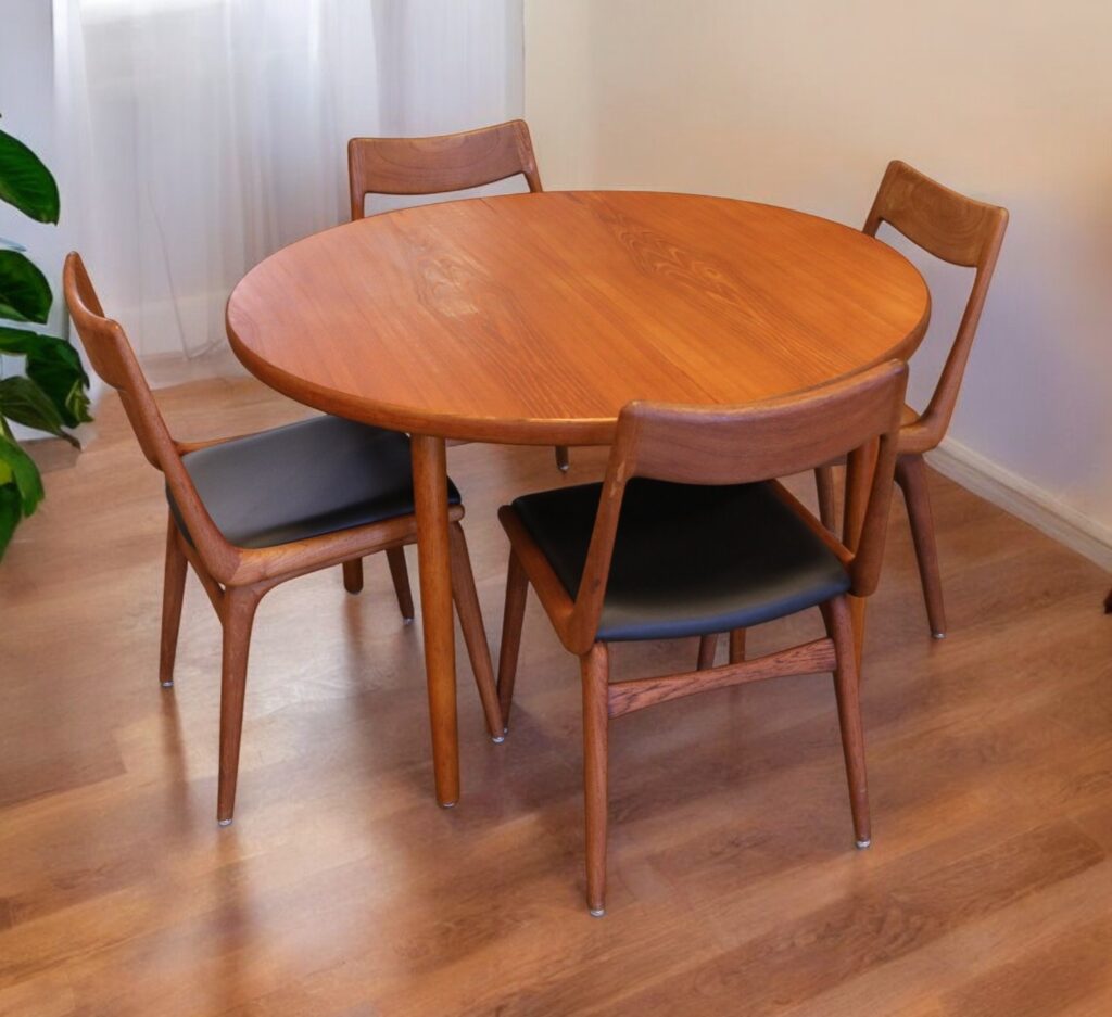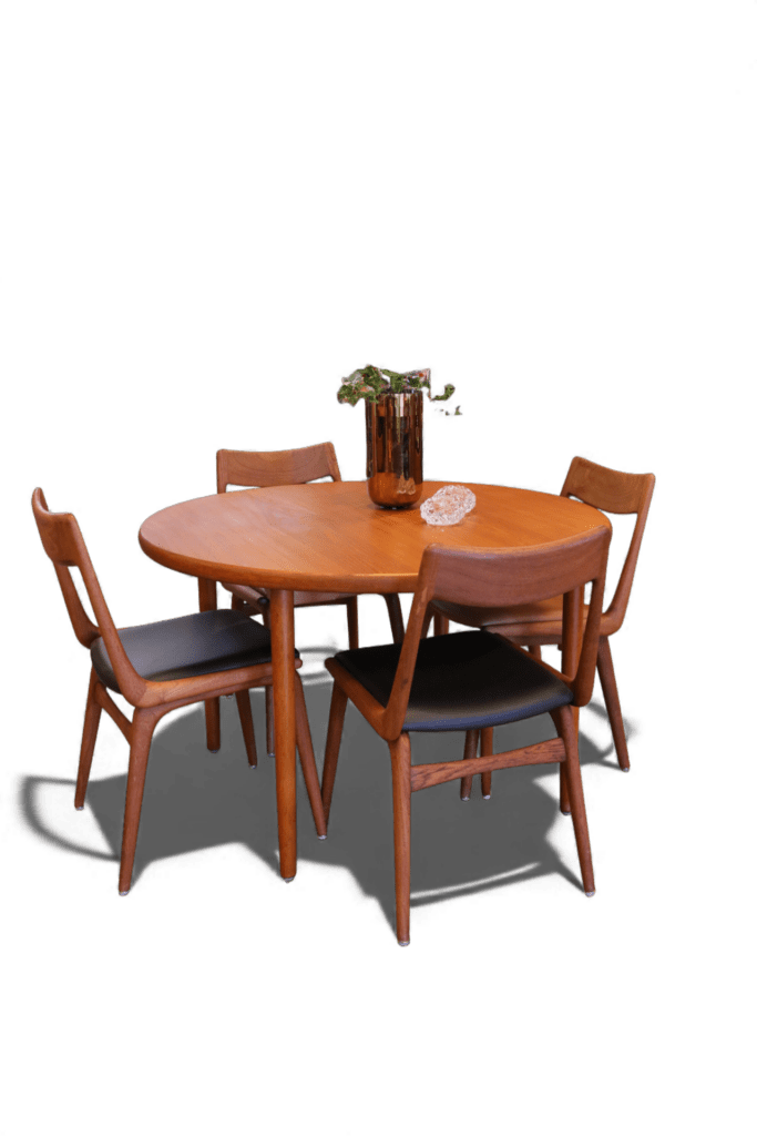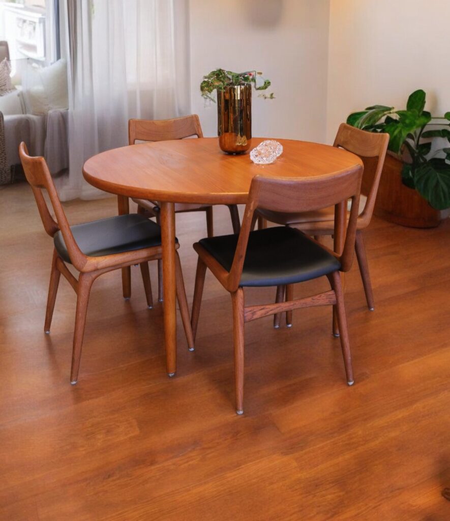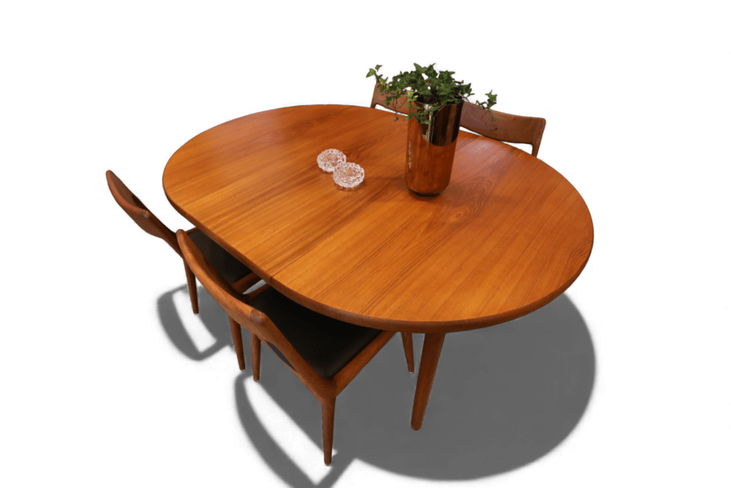 Danskt runt matbord i en mycket stilren och modern modell som passar perfekt in i de flesta hem och som verkligen kan förvandla din matplats till en trivsam och inbjudande miljö! Det är ett utmärkt val för både vardagligt bruk och festliga tillfällen med en känsla av elegans och stil som många hem söker efter.