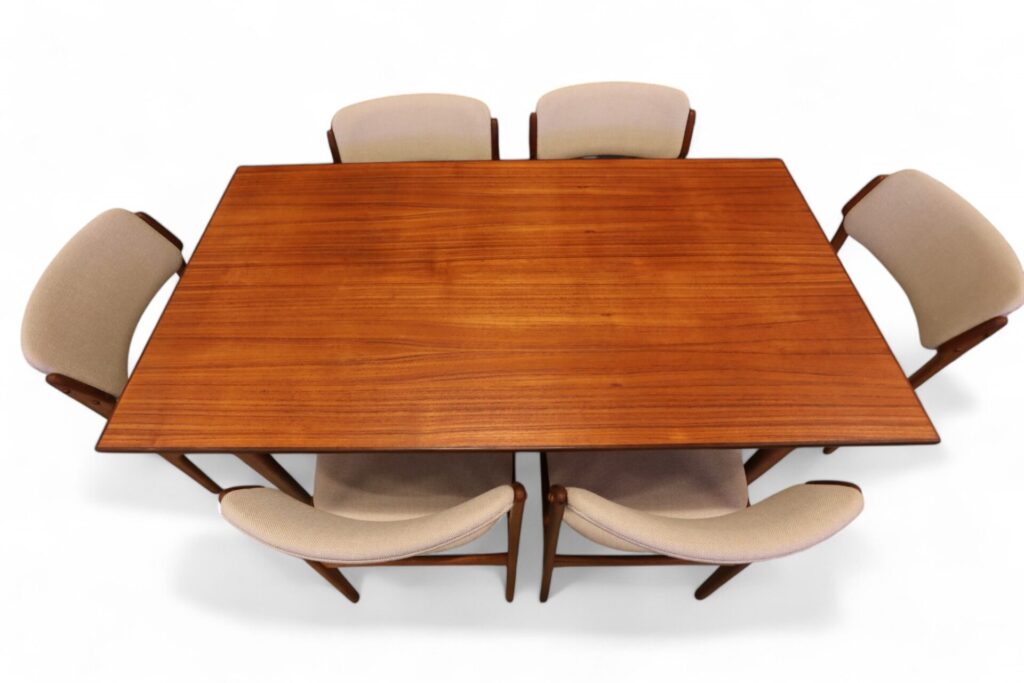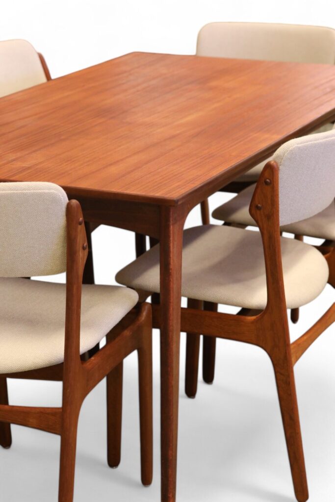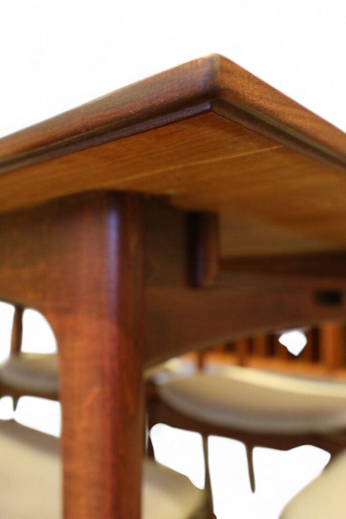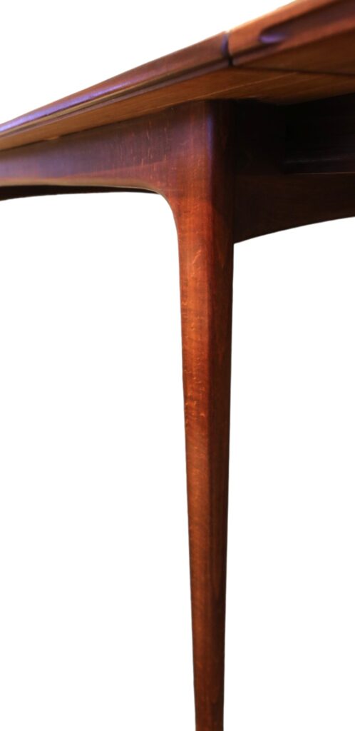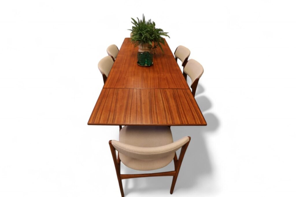 Danskt mycket stilrent och elegant matbord i teak med dubbla iläggsskivor. Bordets formgivning ger det ett mycket tidlöst och elegant uttryck med minimala detaljer.