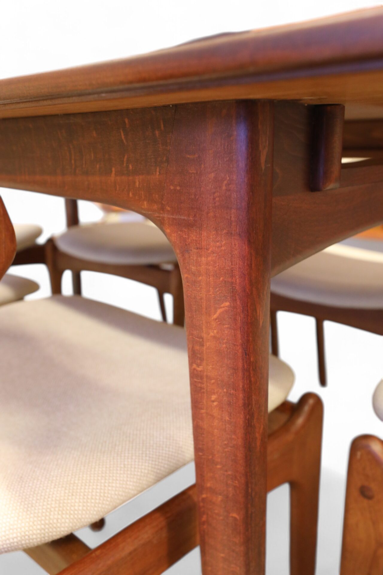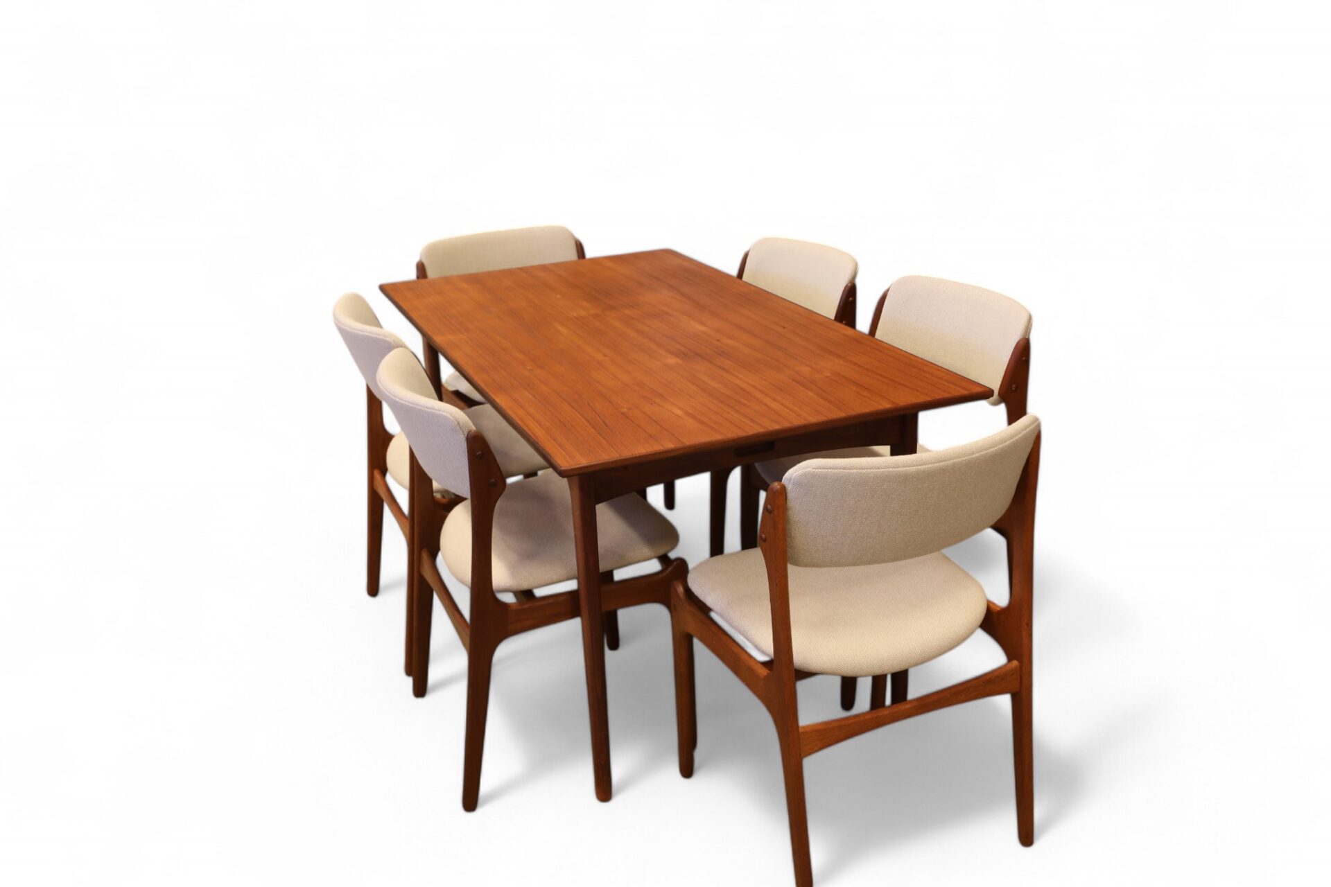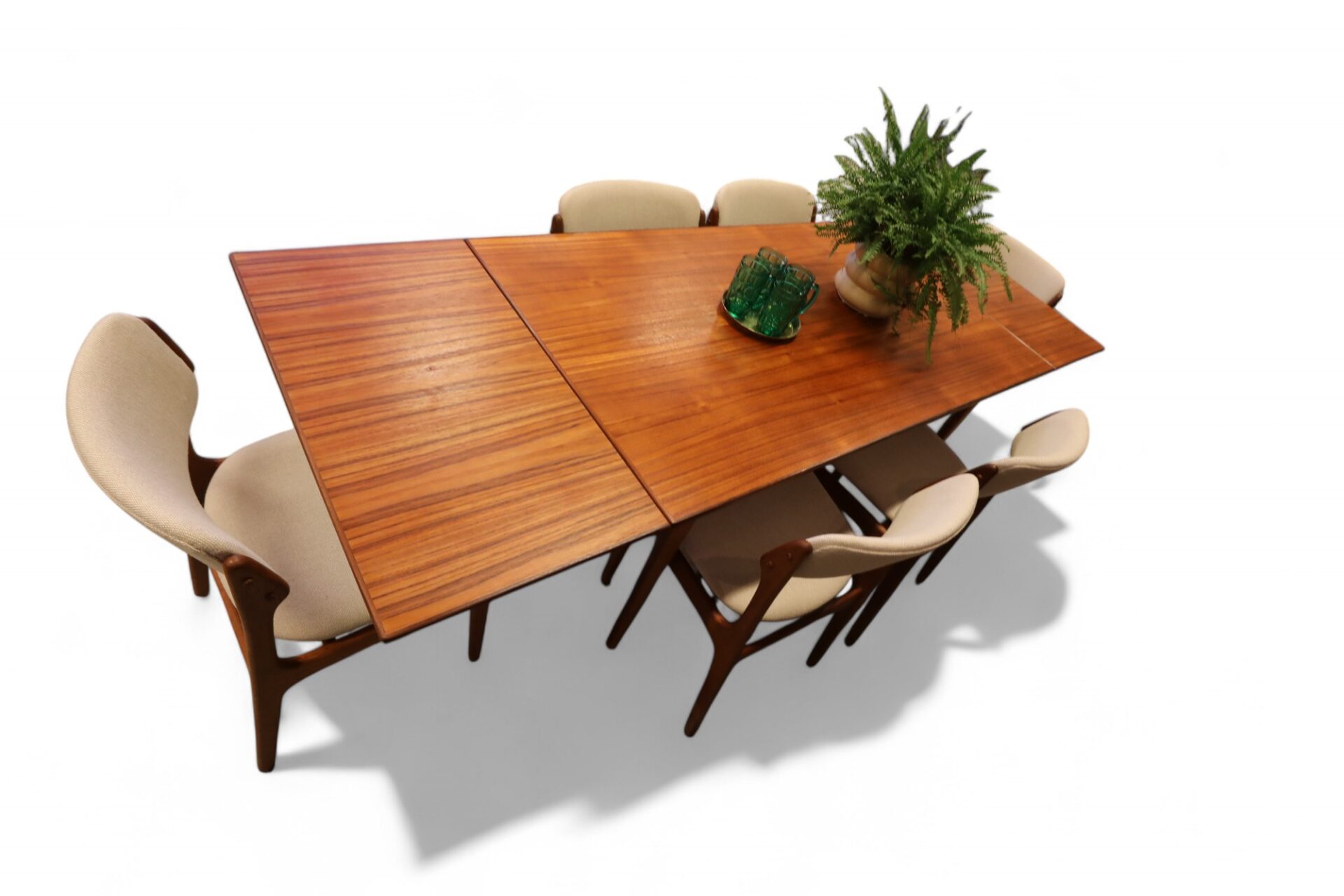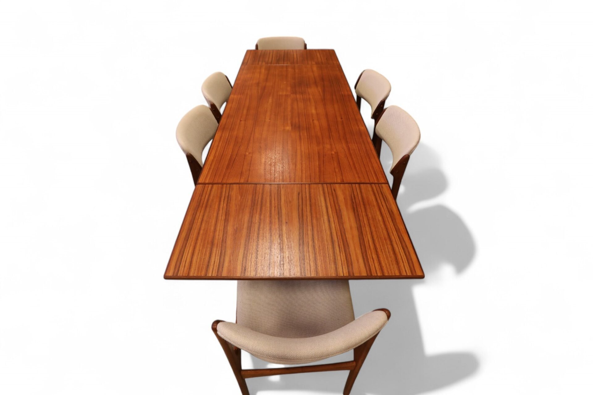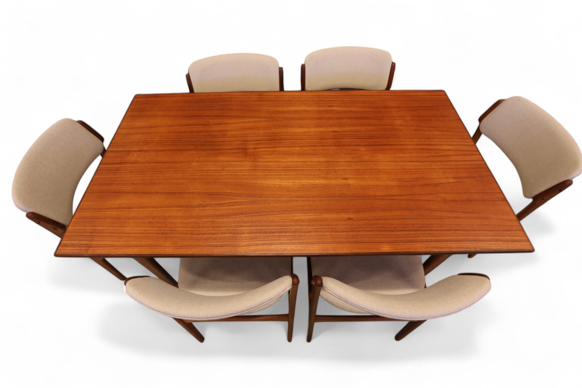 Danskt mycket stilrent och elegant matbord i teak med dubbla iläggsskivor. Bordets formgivning ger det ett mycket tidlöst och elegant uttryck med minimala detaljer.