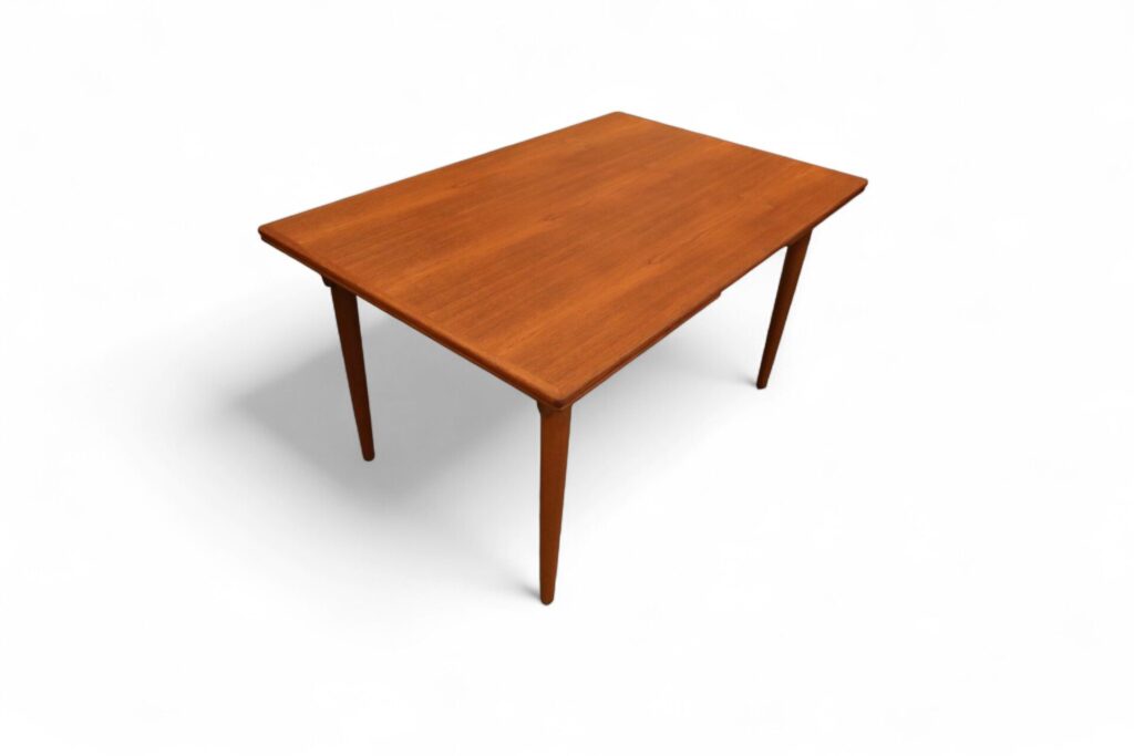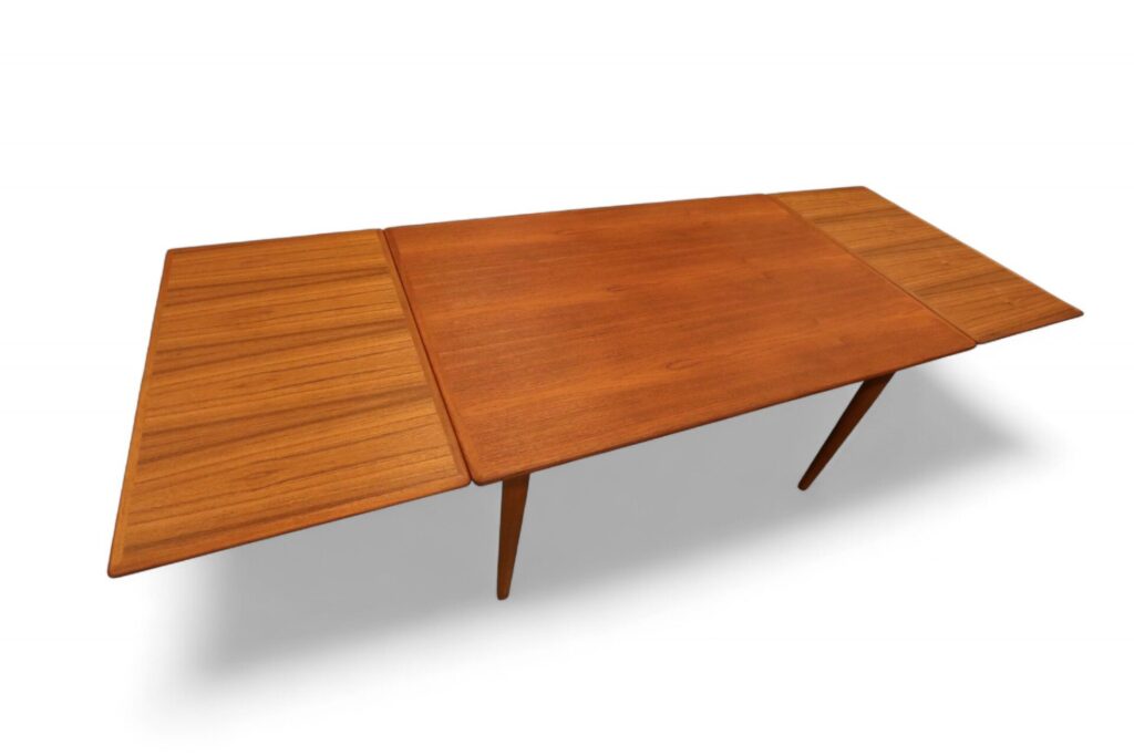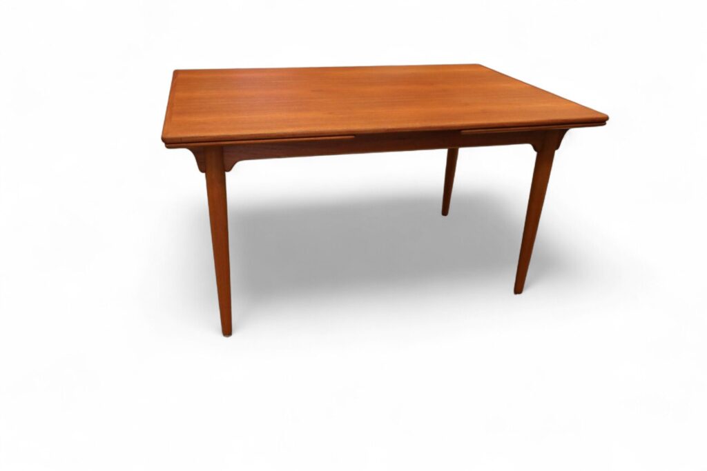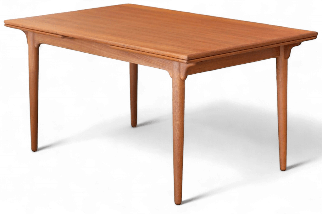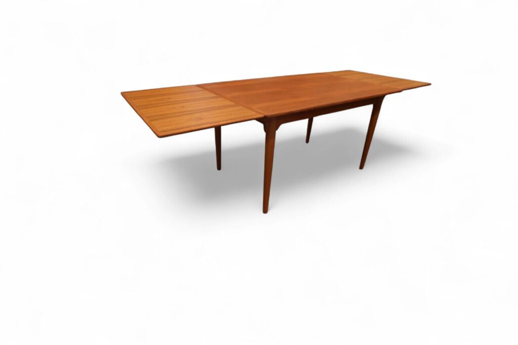 Ett flexibelt och utsökt vackert matbord i teak formgivet av Gunni Omann för Omann Jun Møbelfabrik i Danmark.