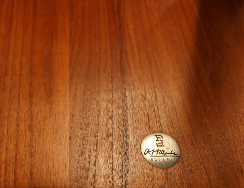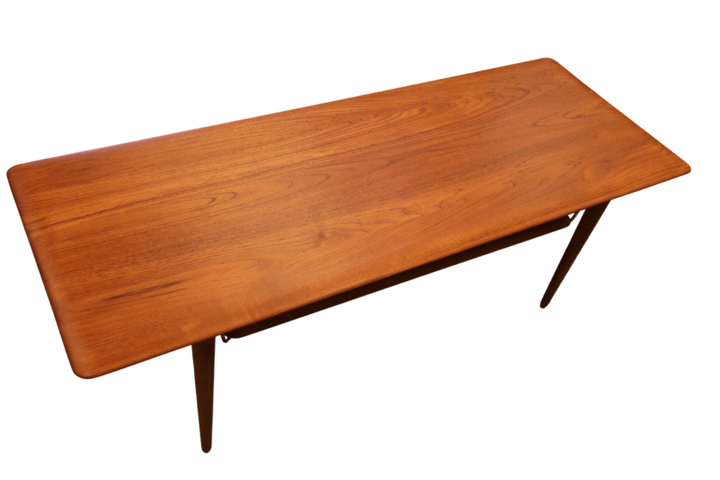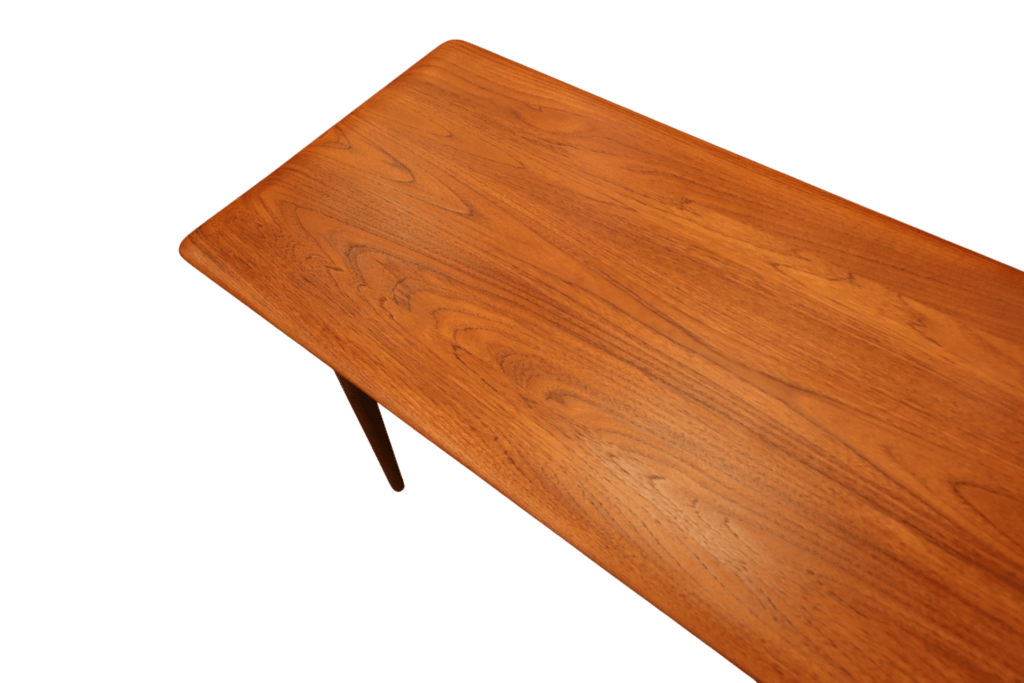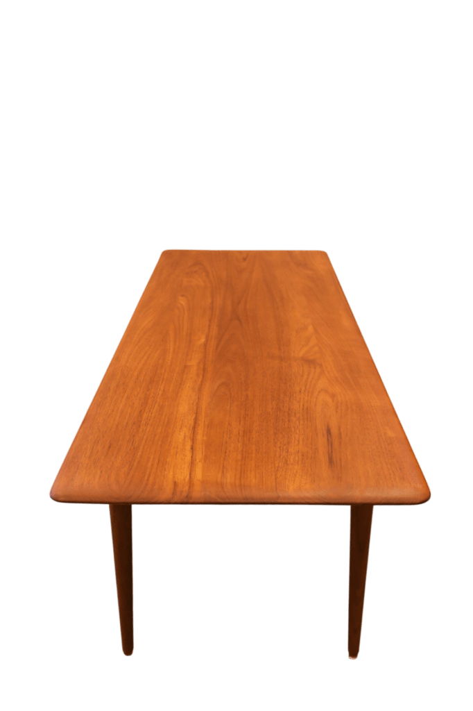 Soffbordet i modellen FD 516, som är tillverkat av massiv teak, designades under det 1950-talet av de kända formgivarna Peter Hvidt och Orla Mølgaard-Nielsen för det prestigefyllda företaget France & Son i Danmark. Bordet har tidlösa estetik och eleganta linjer som har blivit en ikonisk representant för den skandinaviska designtraditionen och fortsätter att fascinera och inspirera inredare och möbelentusiaster världen över.