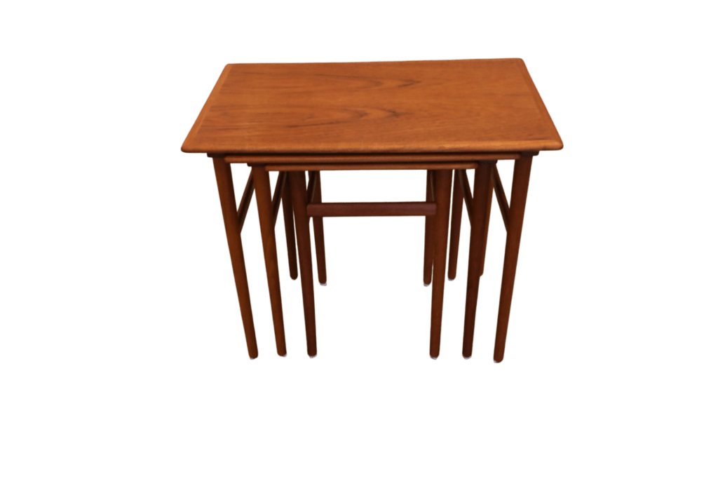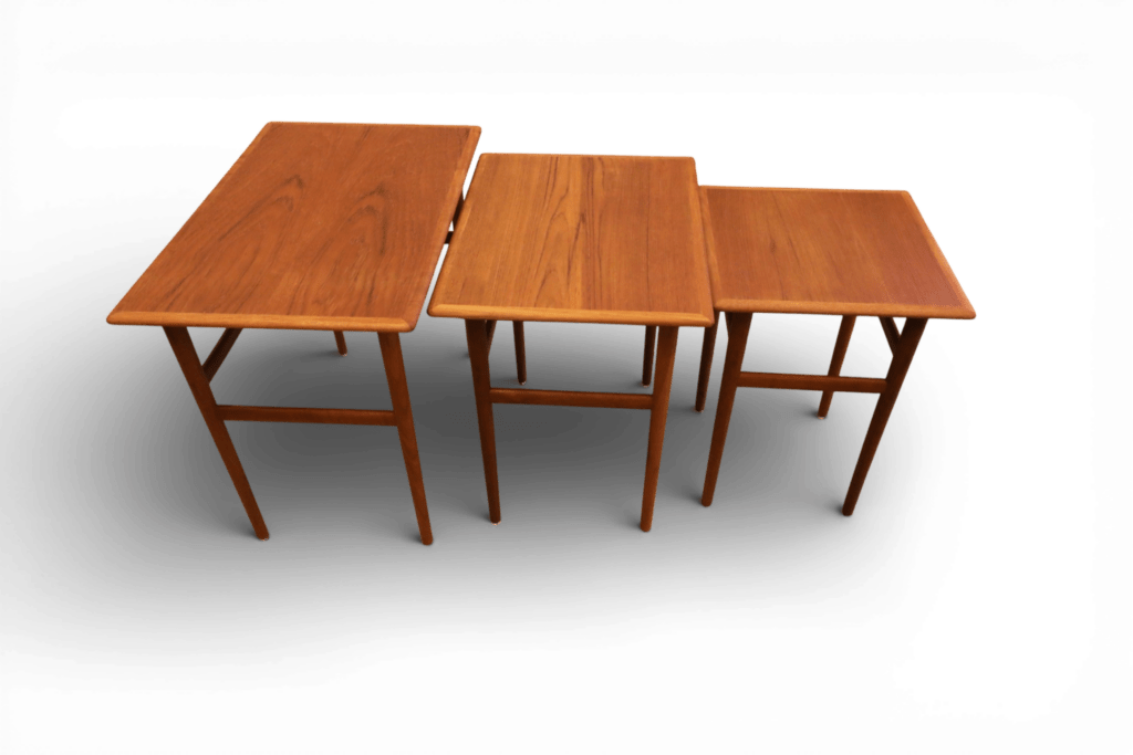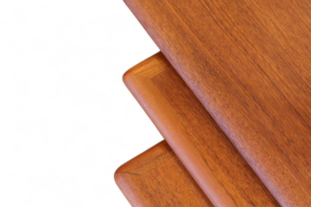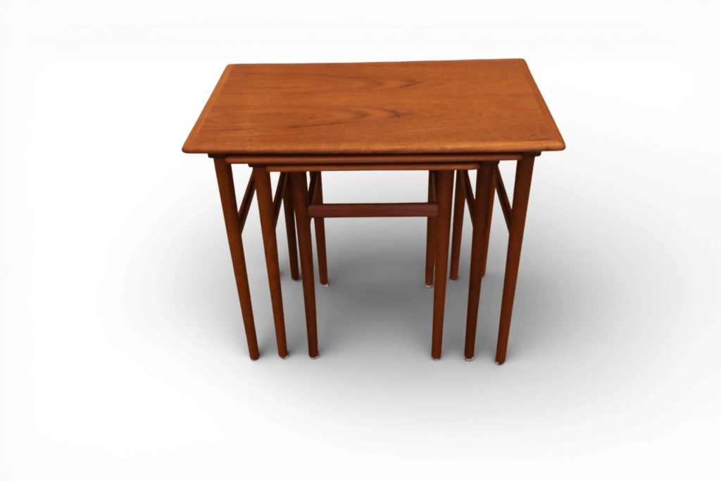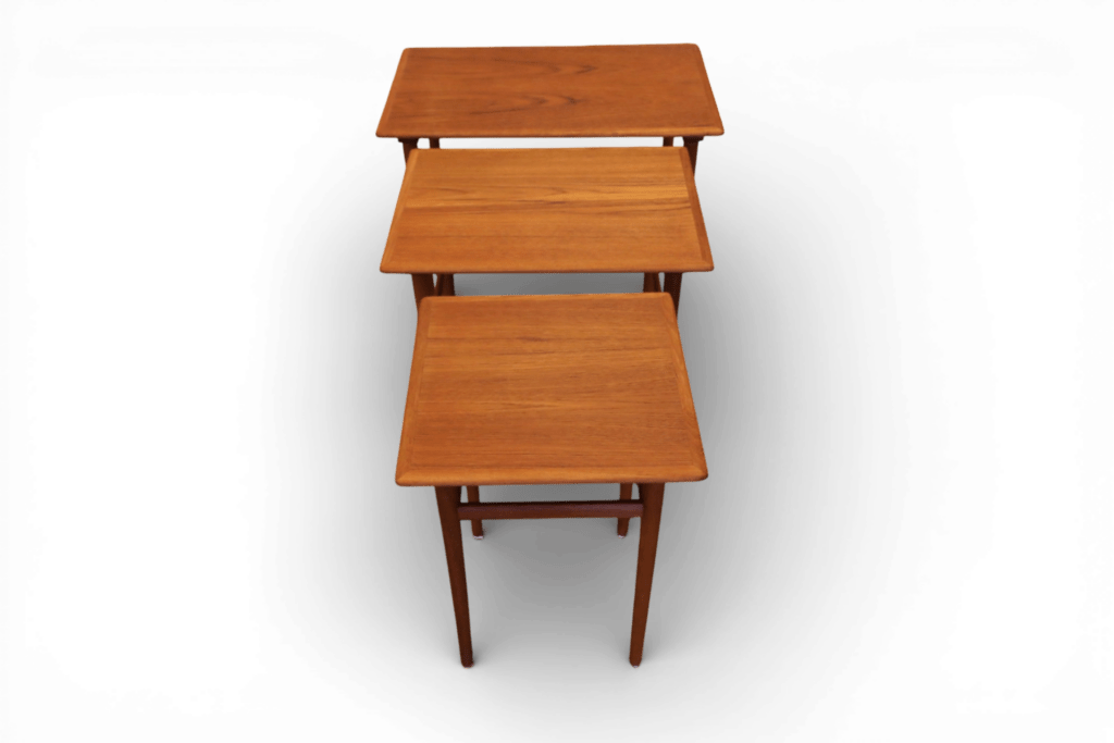 Ett makalöst vackert och elegant satsbord i teak, formgivet av Poul Hundevad för Fabian i Danmark.