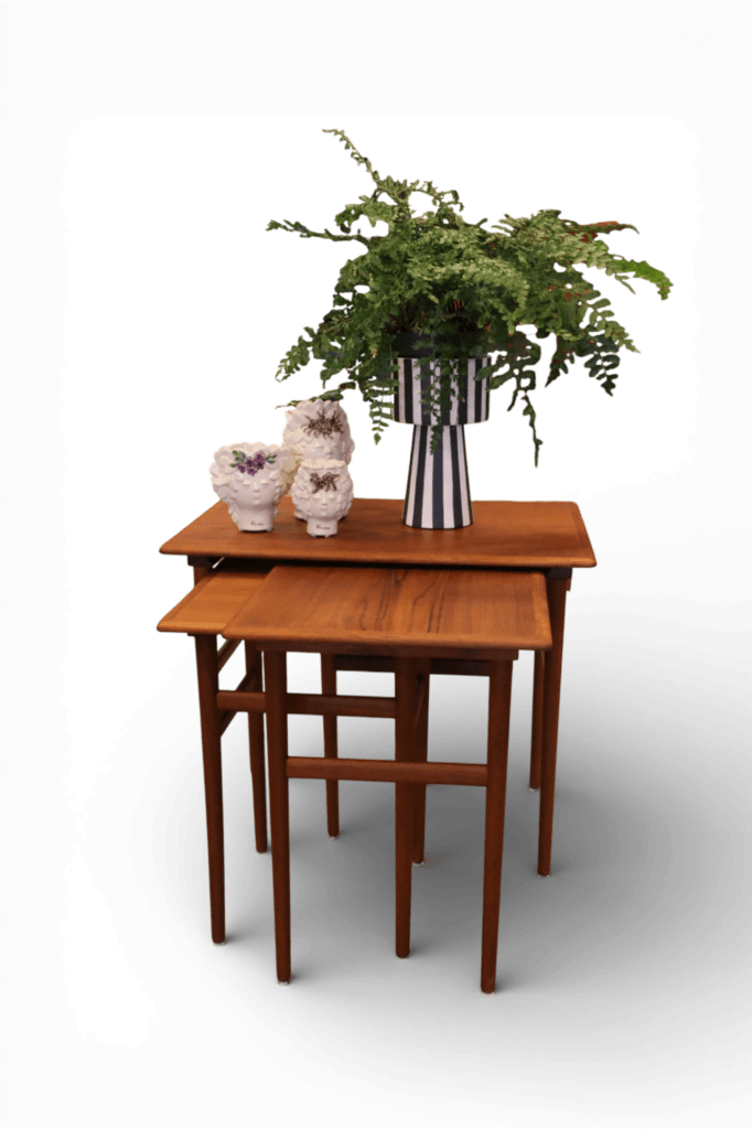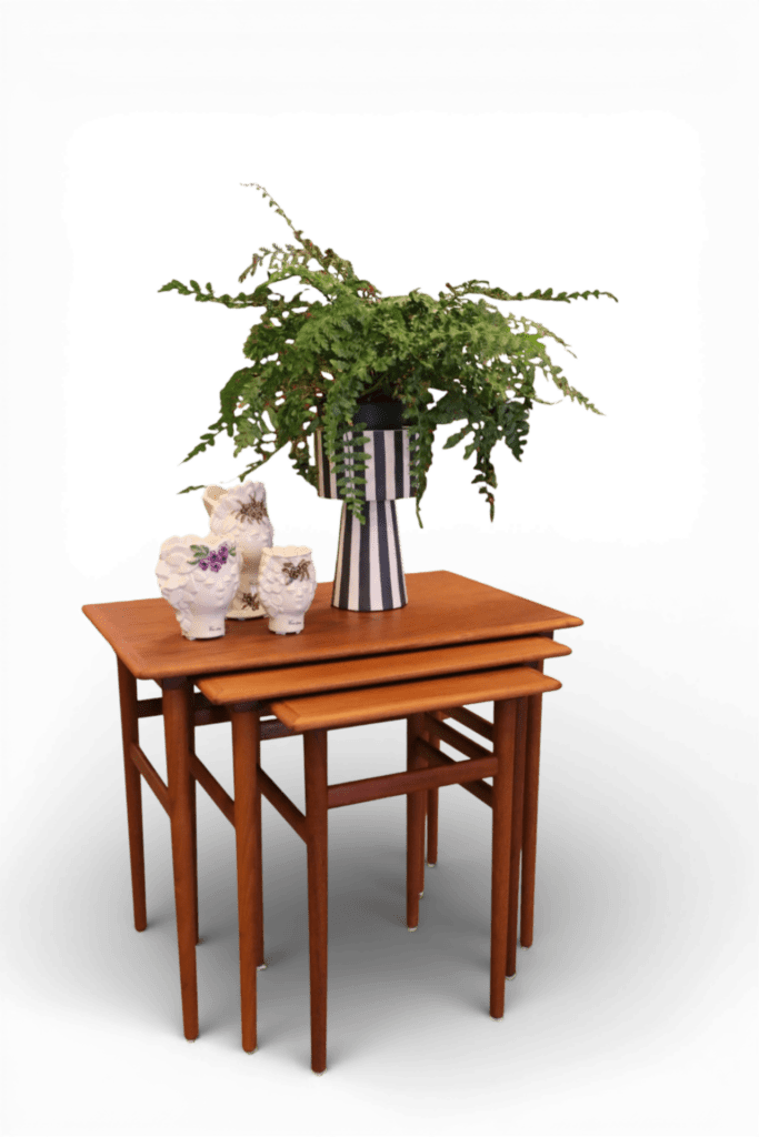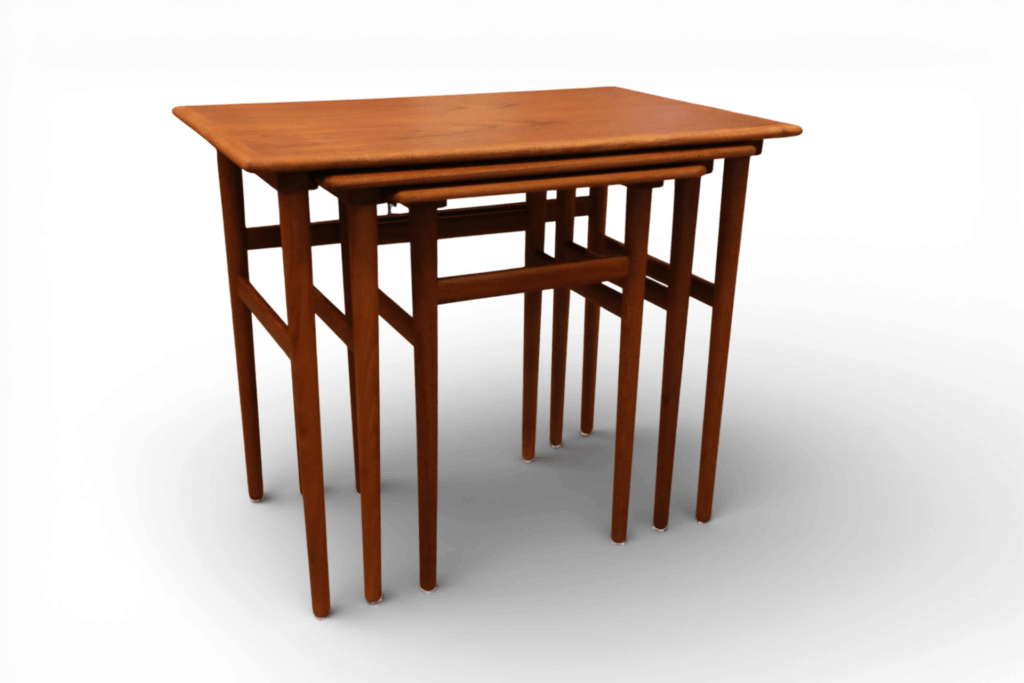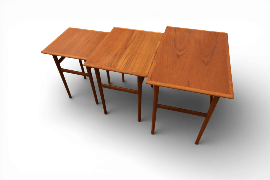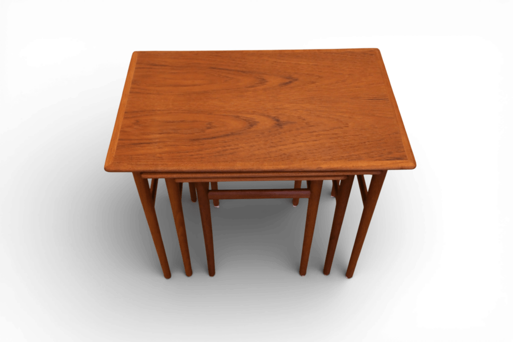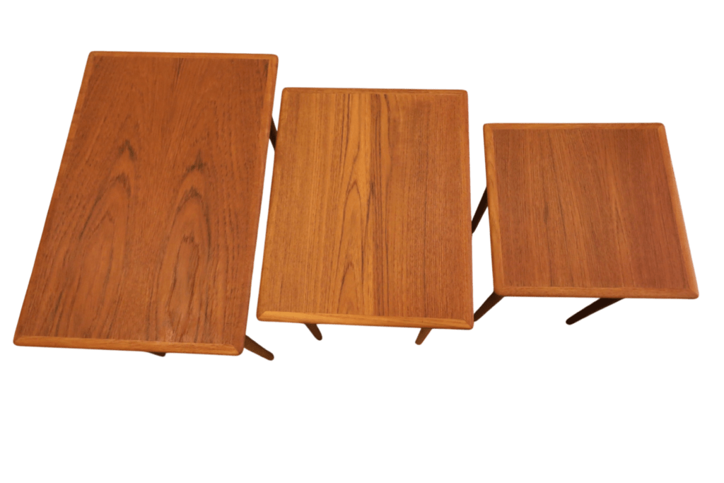Ett makalöst vackert och elegant satsbord i teak, formgivet av Poul Hundevad för Fabian i Danmark.