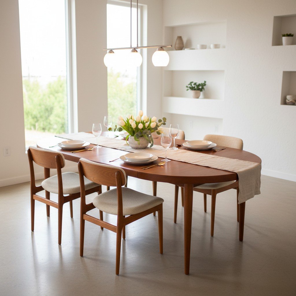 Vilken pärla vi har här, ett fantastiskt danskt matbord i teak från 1960-talet som verkligen talar till den medvetna inredningsälskaren ✨