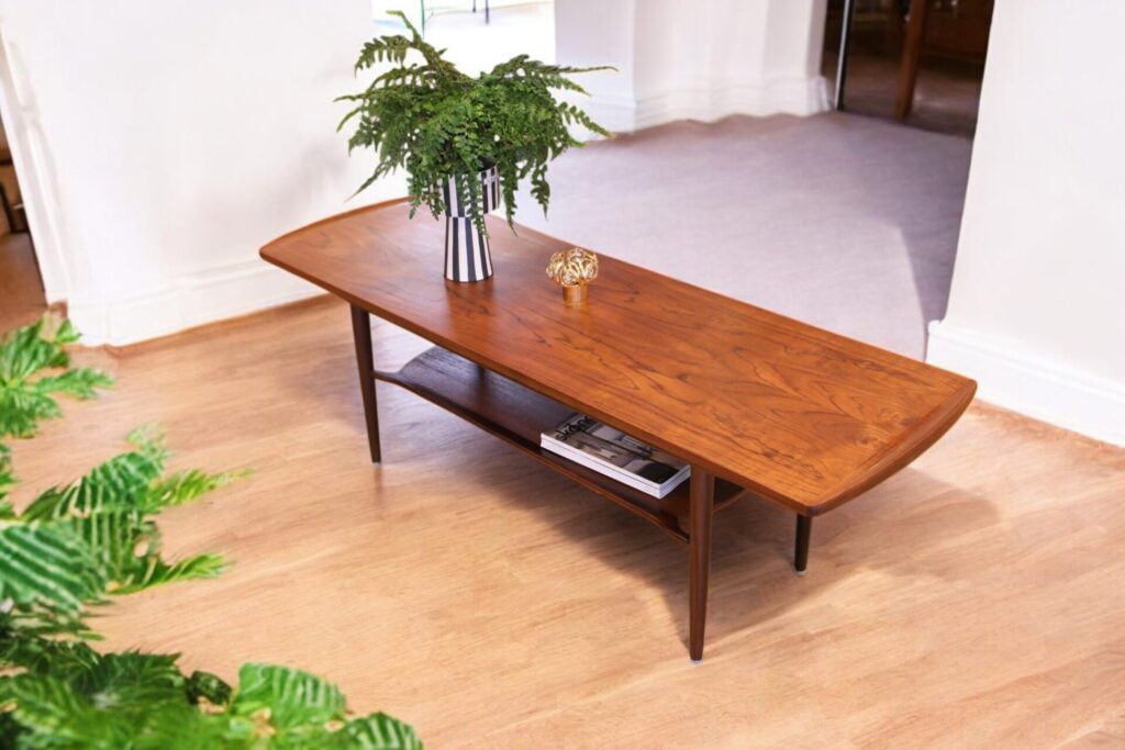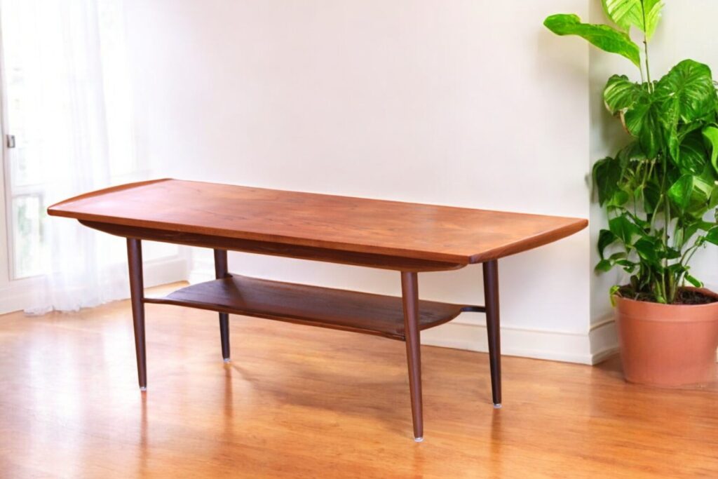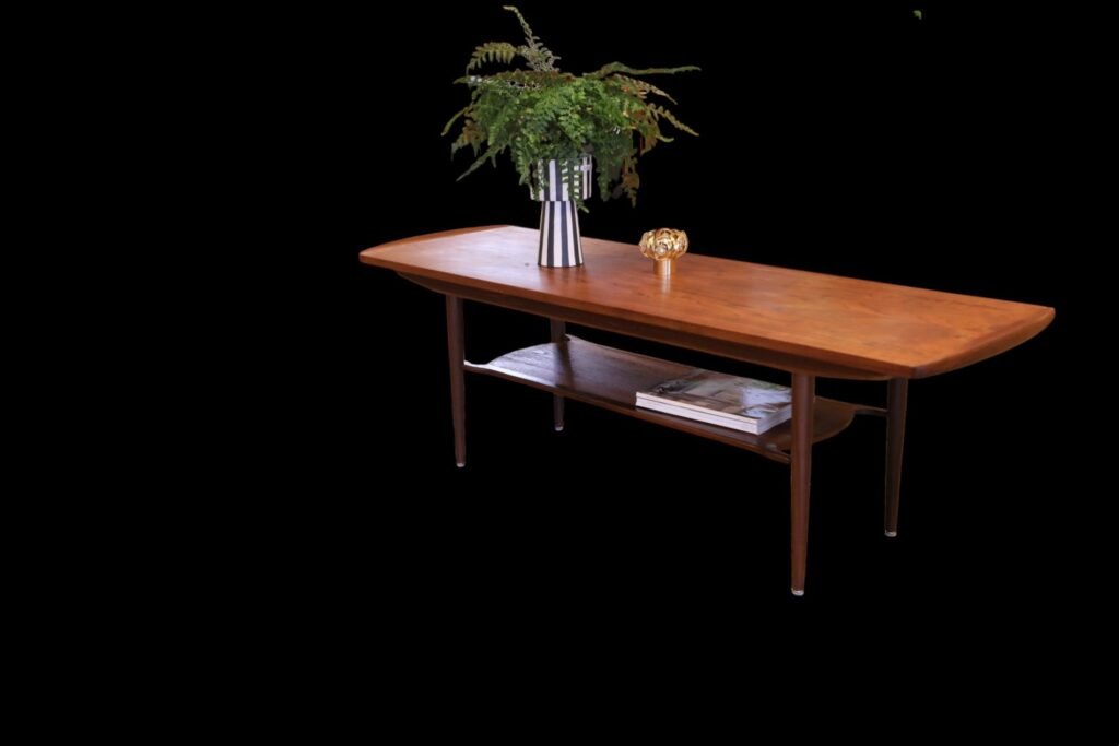 Danskt elegant och stilrent soffbord i mörk teak med så många utsökta detaljer!