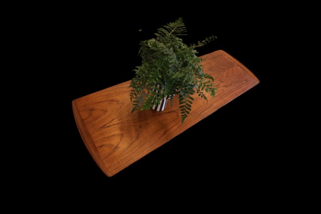 En mycket elegant modell av soffbord med slank bordsskiva med mjuka avslut med kälade kortsidor.