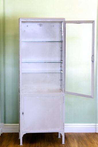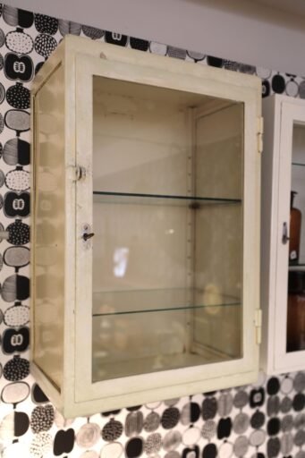 Vägghängt läkarskåp i plåt och glas, det absolut perfekta skåpet för att displaya hemmets finheter