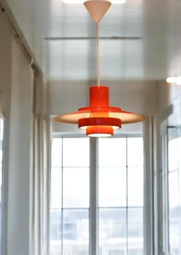 Taklampa Falcon, formgiven av Andreas Hansen och producerad av Fog & Mørup i Danmark. En