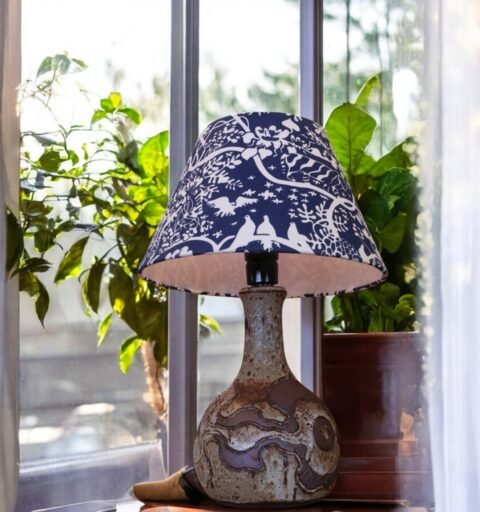 Handgjord lampskärm i linnetyget Tre Öar formgivet av Josef Frank för firma Svenskt Tenn. I