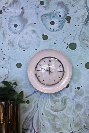 Klassisk väggklocka från tyska Mauthe i benvitt porslin med en diskret guldkant. Detaljer som välvt