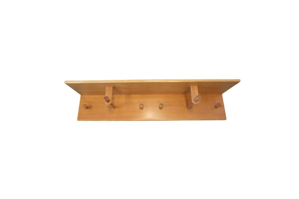 Den har sex knoppar som erbjuder en praktisk och stilren lösning för att hänga upp kläder och tillbehör. Dessutom finns det en smidig möjlighet att hänga upp kläder med galgar, vilket gör det ännu enklare att organisera dina plagg effektivt. För extra förvaring finns även en hylla som är perfekt för mössor, korgar och diverse andra saker, vilket bidrar till en mer ordnad och harmonisk miljö i hallen/rummet.