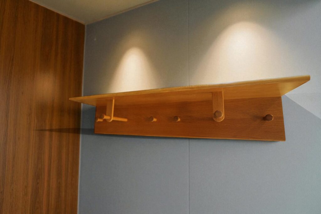En ovanlig hatthylla i ek av Aksel Kjersgaard Odder Danmar.