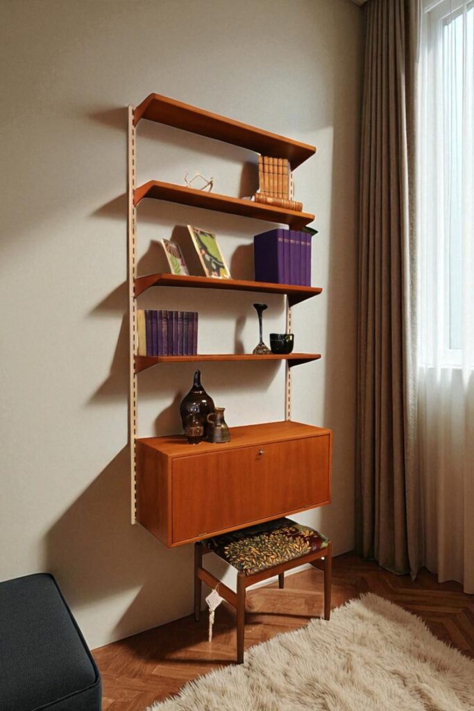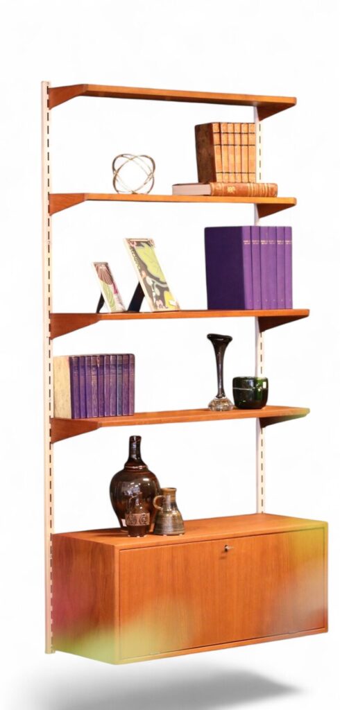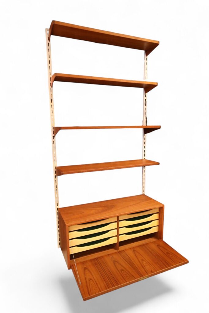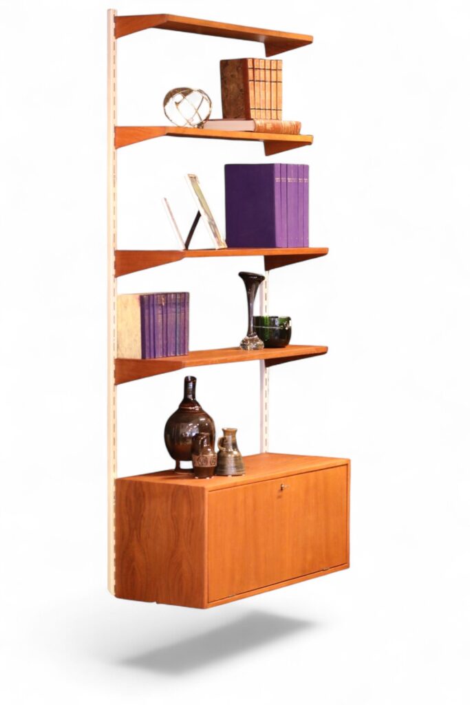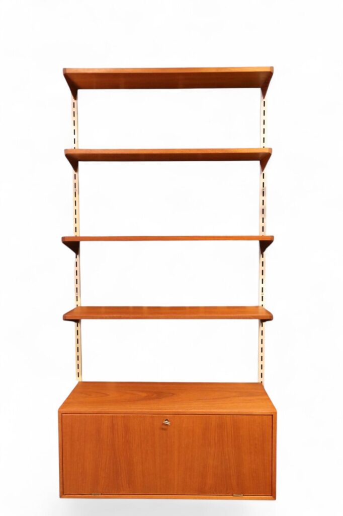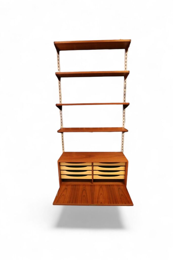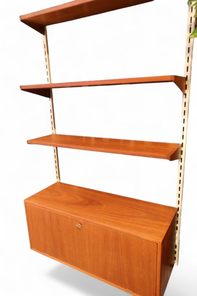 Ett klassiskt vägghängt FM reolsystem formgivet av dansken av Kai Kristiansen.