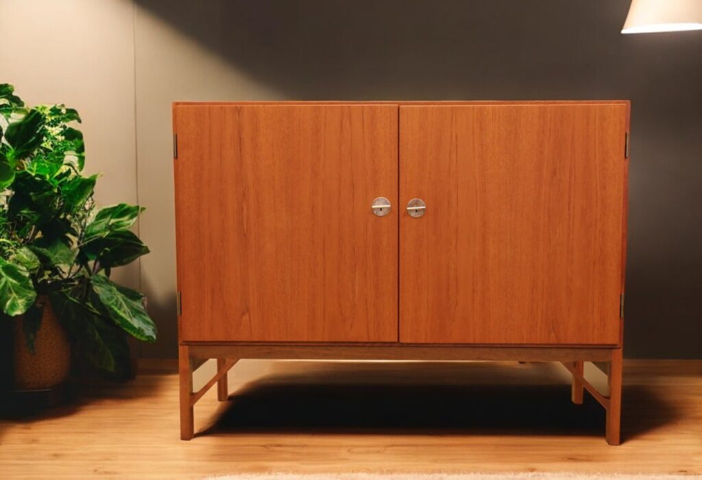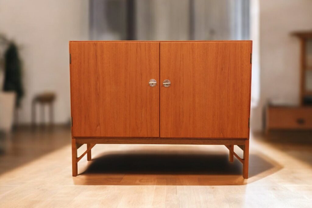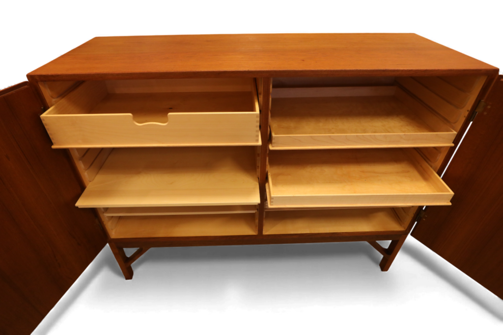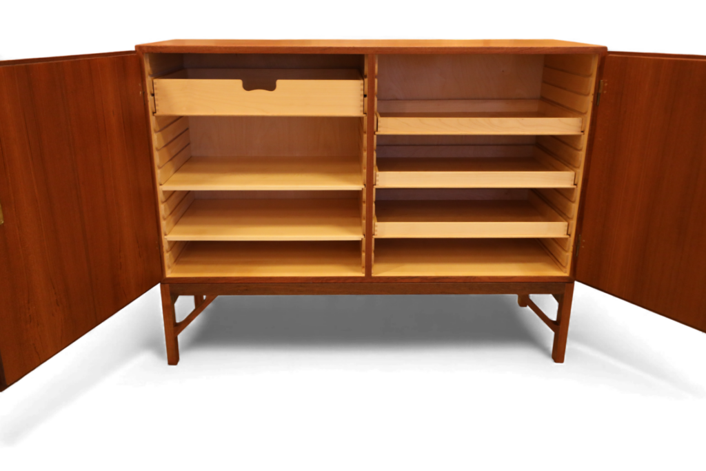 Skåpet är designat av Børge Mogensen under 1960-talet och producerat av C. M. Madsen för FDB Møbler, Danmark.