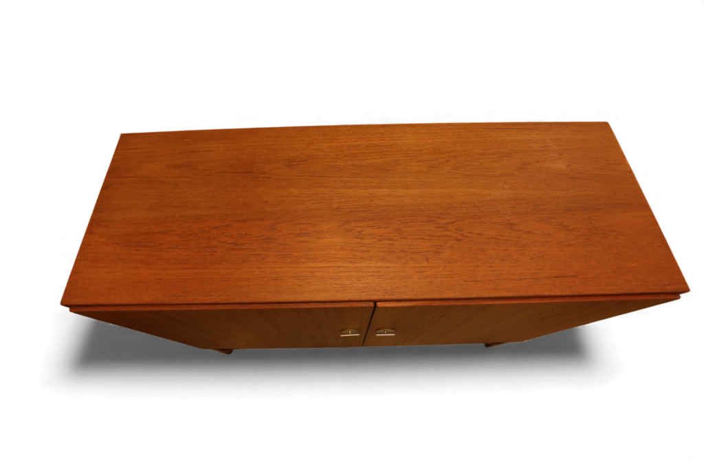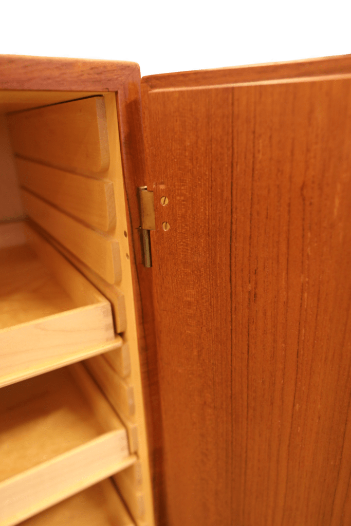 Benställningen är i även den i teak samt skåpet har inredning i ljust träslag.
