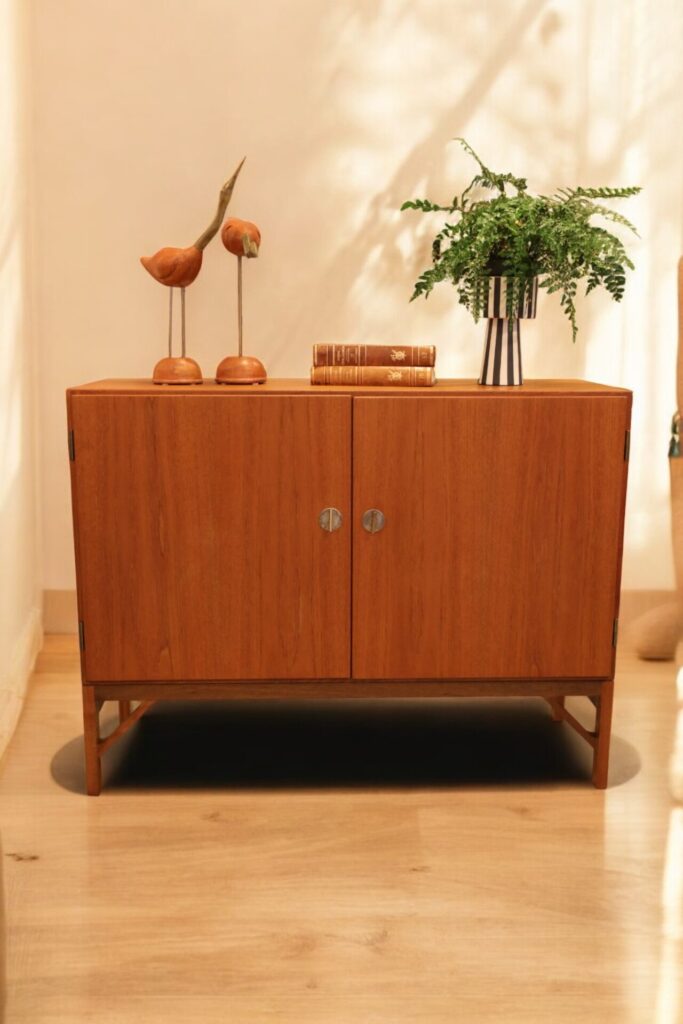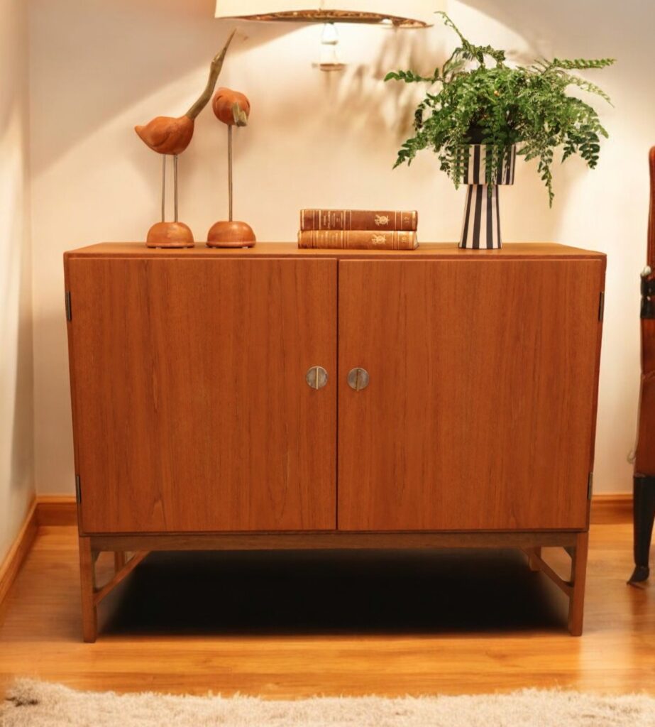 Nu har vi det ikoniska skåpet kallad China Cabinet i modell 232 på ingång. Formgivet av Borge Mogensen och dessutom skåpet med de så eftertraktade nycklarna i mässing som liknar eleganta handtag.