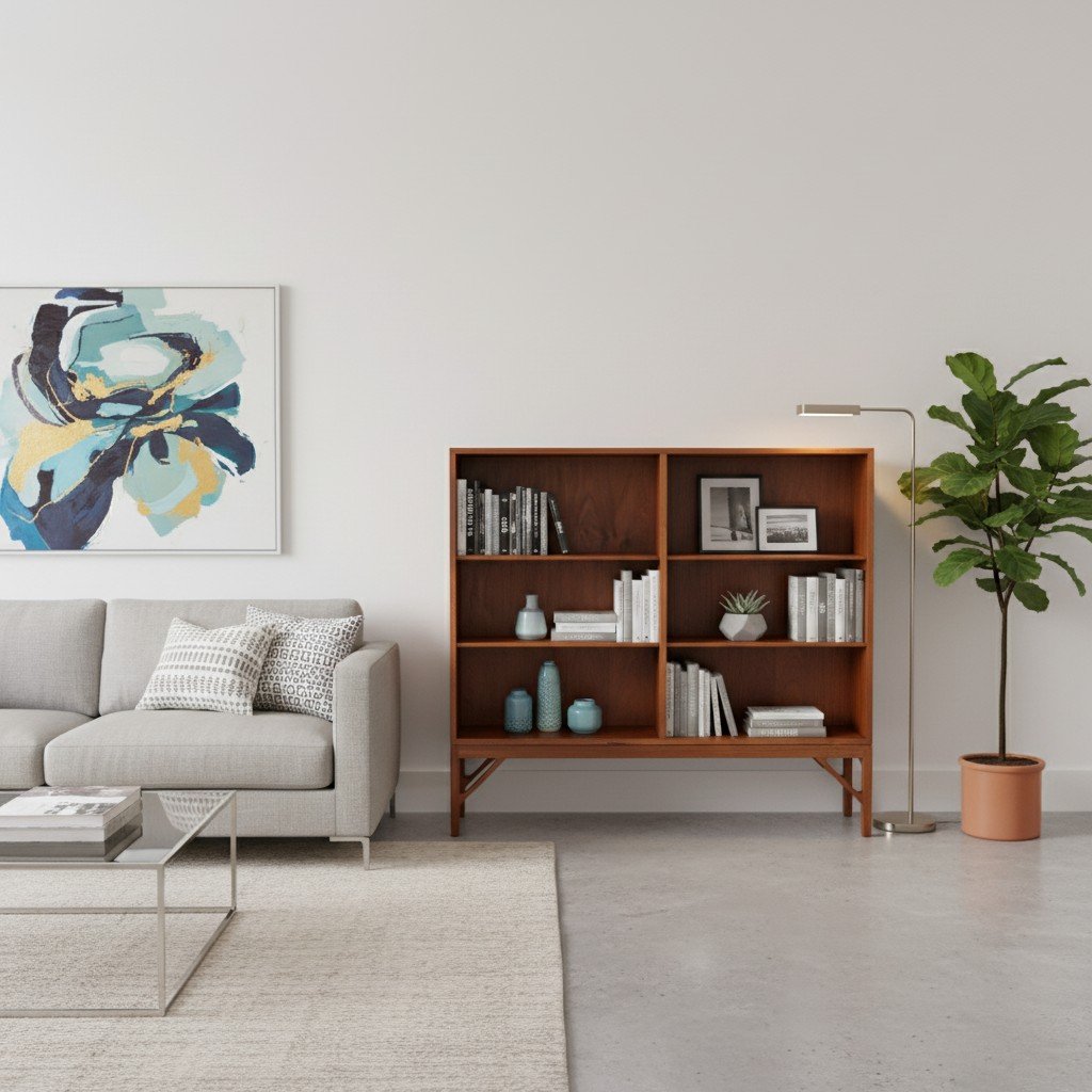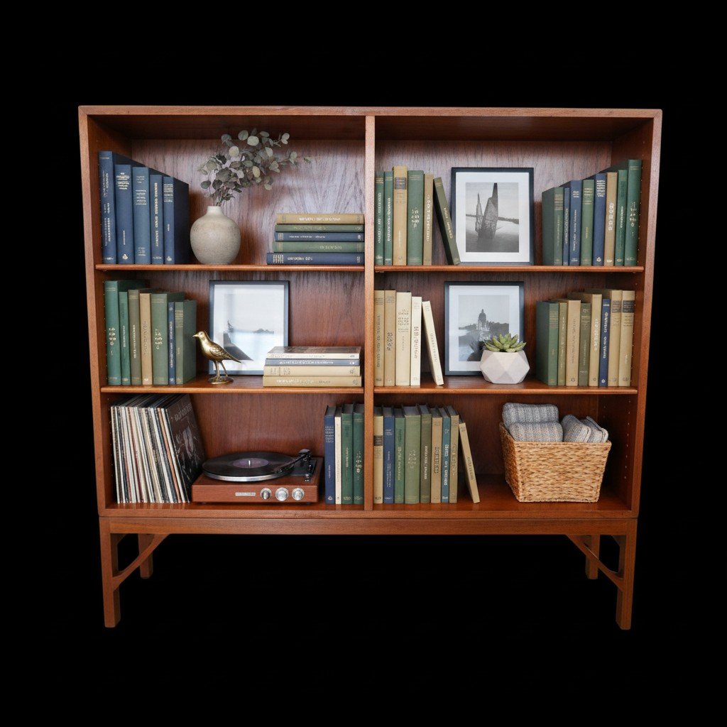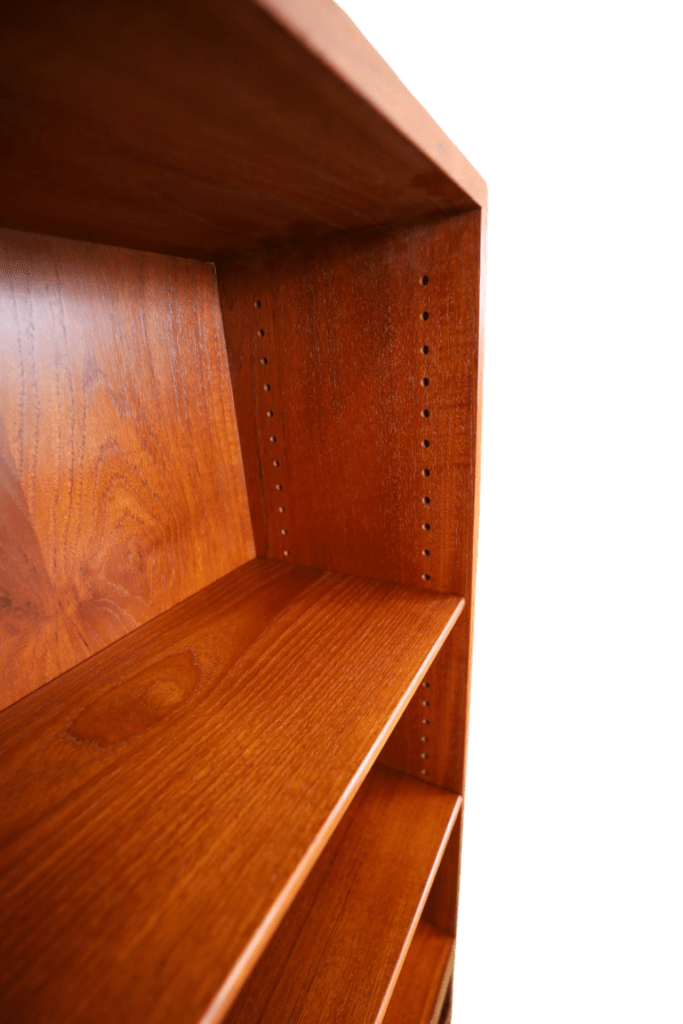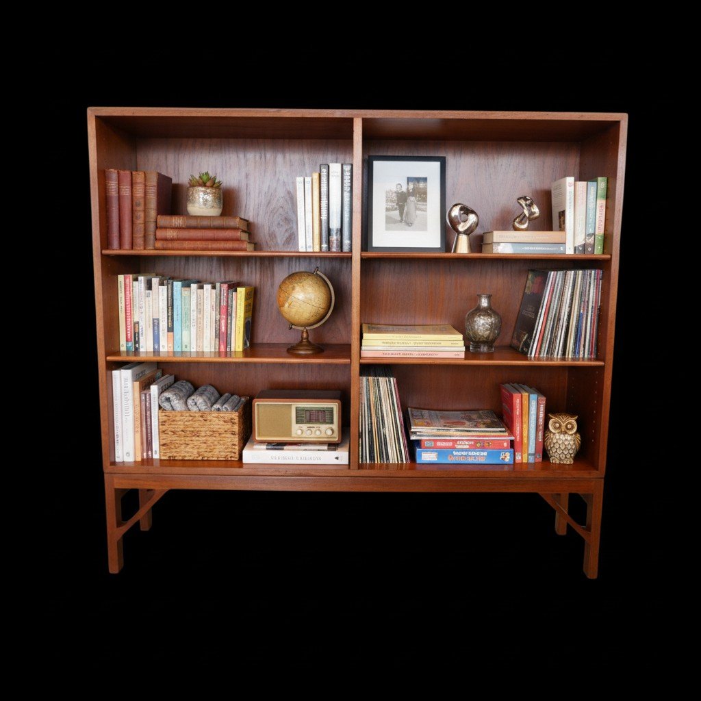 Klassisk och mycket stilren bokhylla i teak formgiven av Borge Mogensen för FDB Möbler i Danmark.