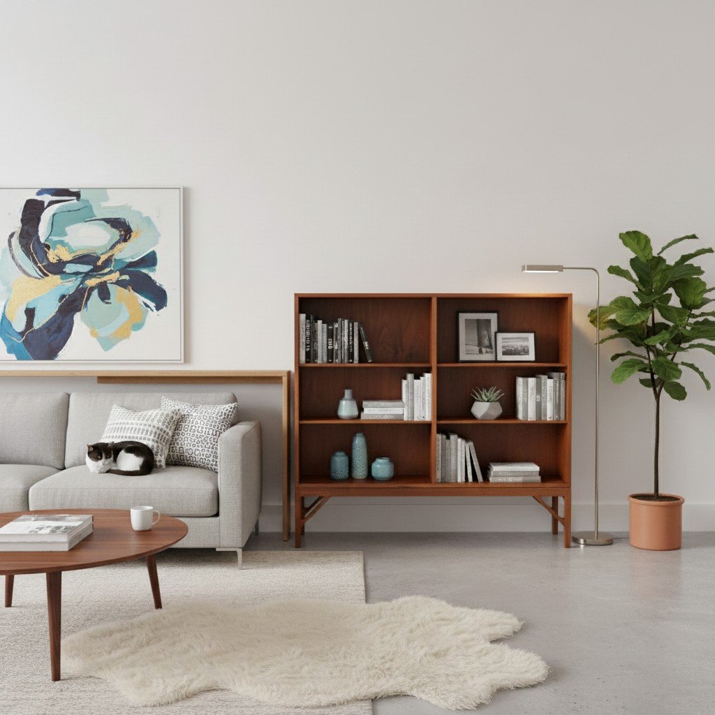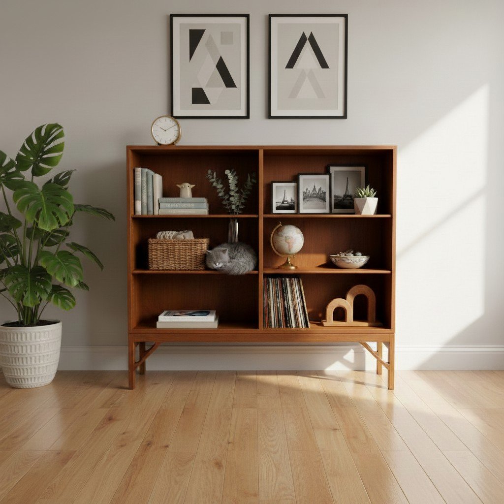 Bokhyllan är i den mellanhöga modellen med fyra hyllplan som alla är flytt- samt uttagbara. Lätt att flytta om i hyllan, allt efter smak samt behov.
