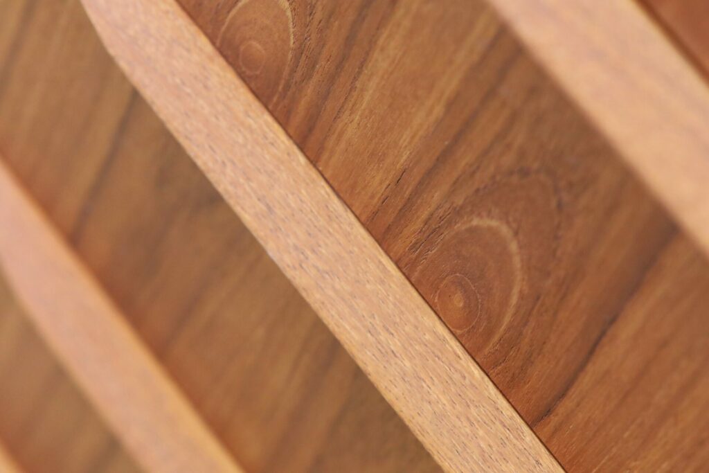 Möbeln står på runda avsmalnande ben som är enkla att demontera vid transport.