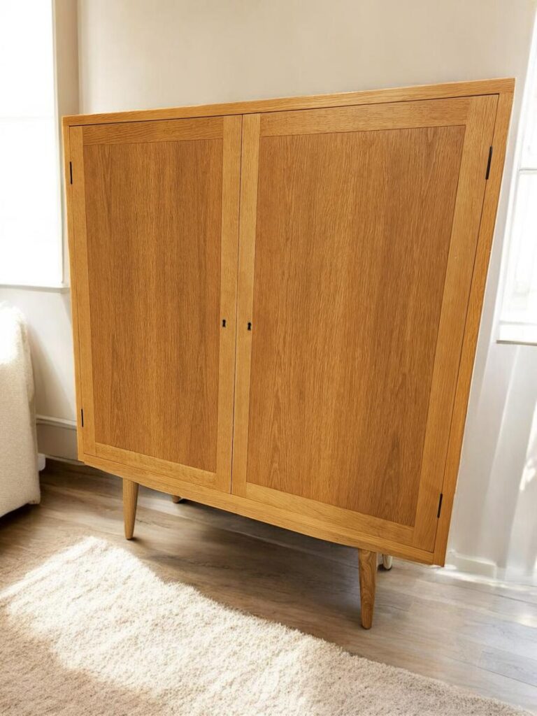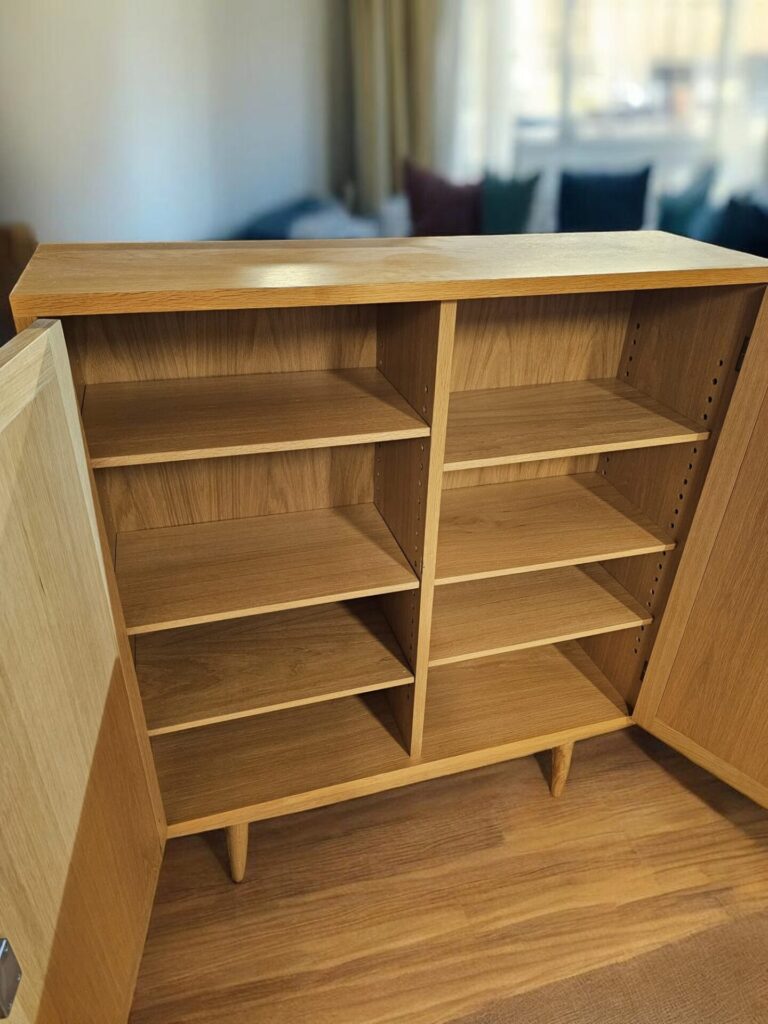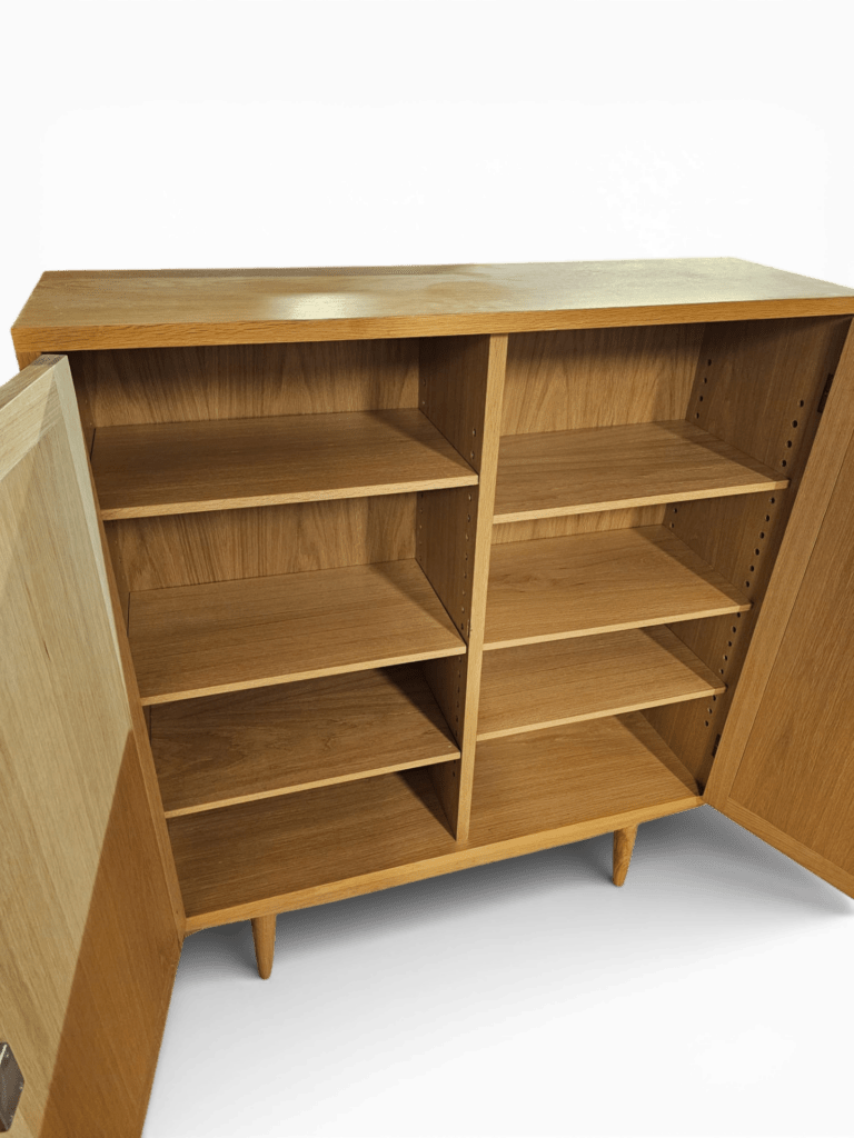 Danskt skåp i ek med nätta mått som gör skåpet mycket lättplacerat och samtidigt erbjuder utmärkt förvaring!