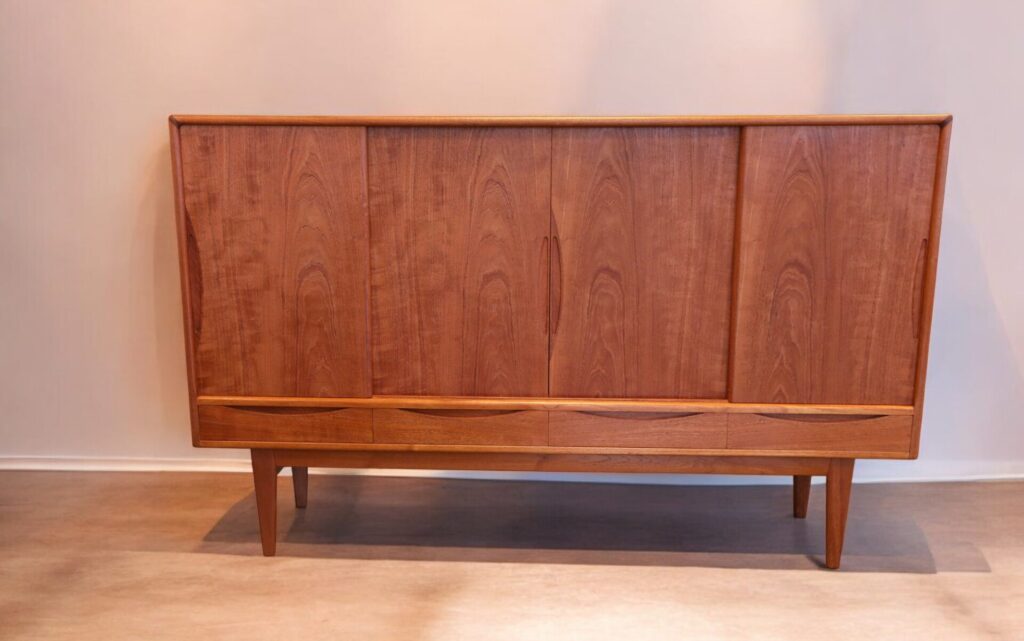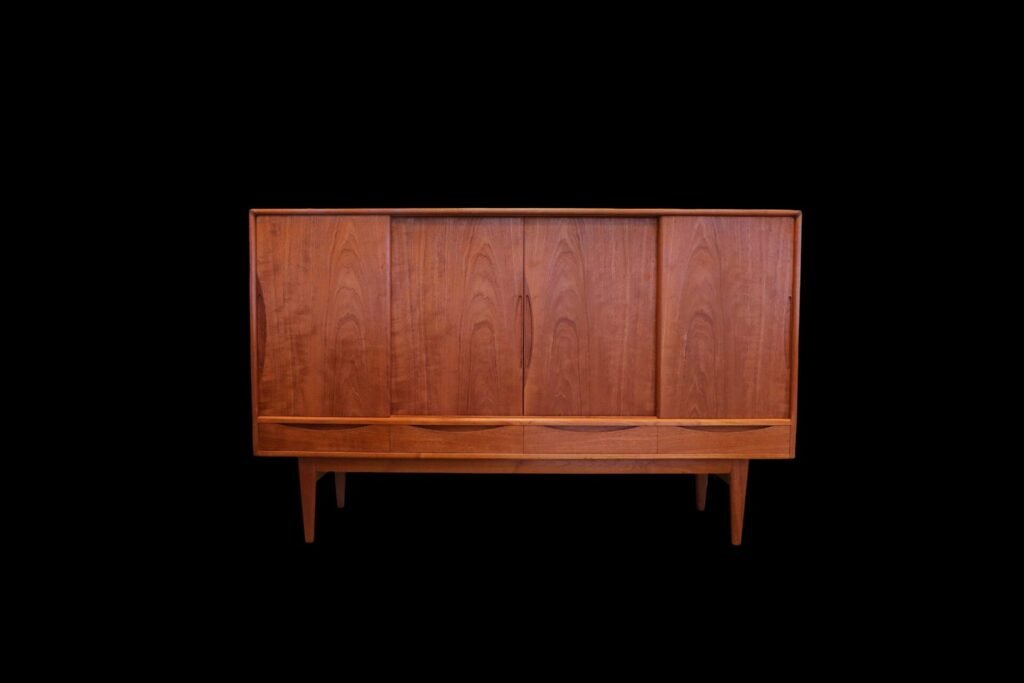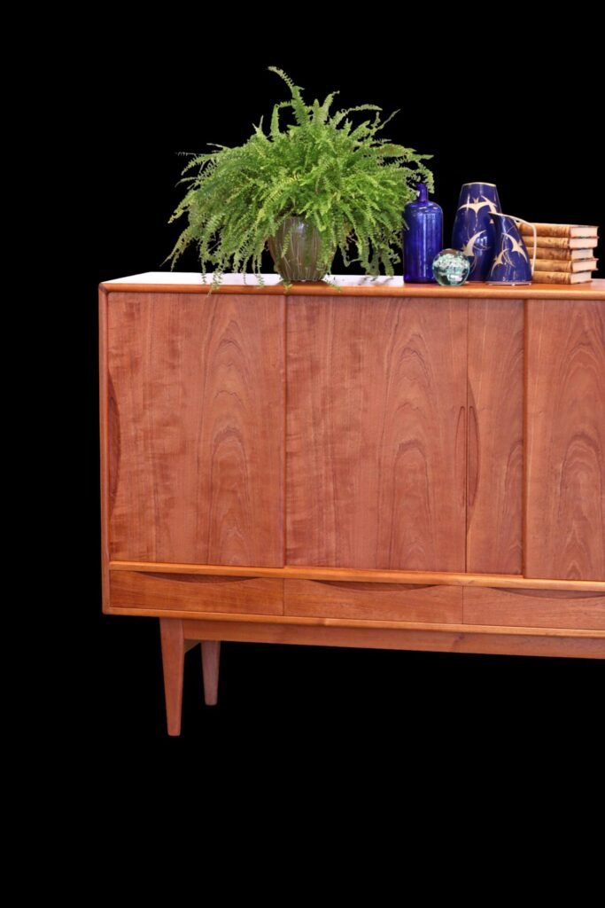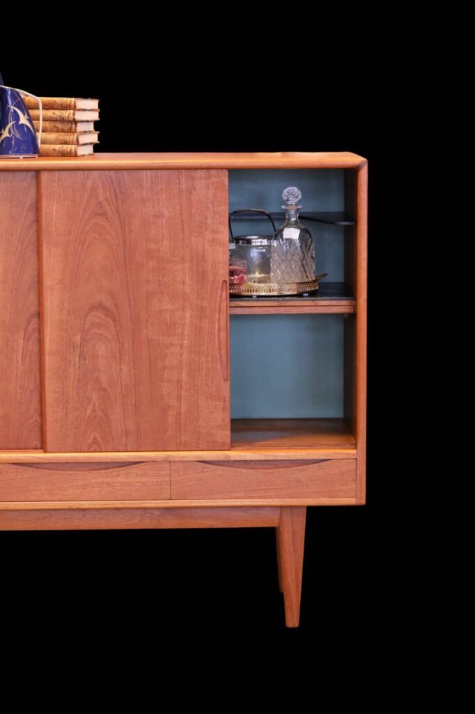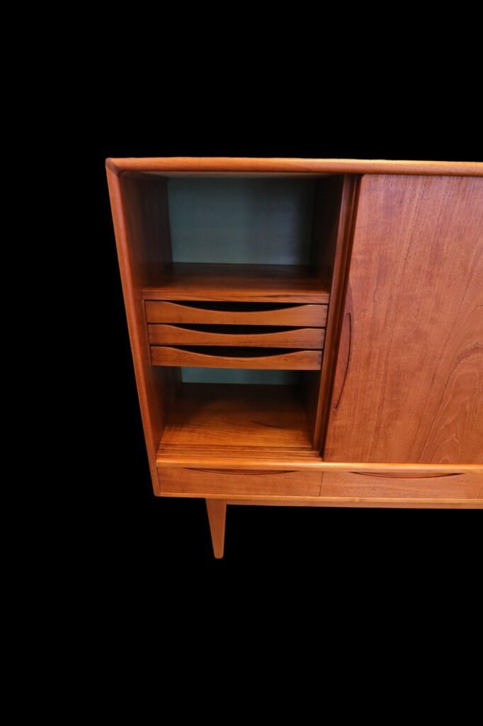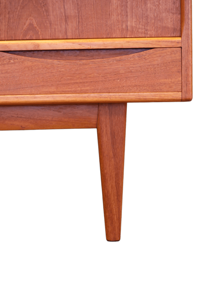 Ett makalöst vackert och smakfullt skåp tillverkat med allra högsta omsorg! Skåpet är danskt och har långa eleganta linjer i en gyllenbrun ton på teaken som dessutom har underbar ådring.