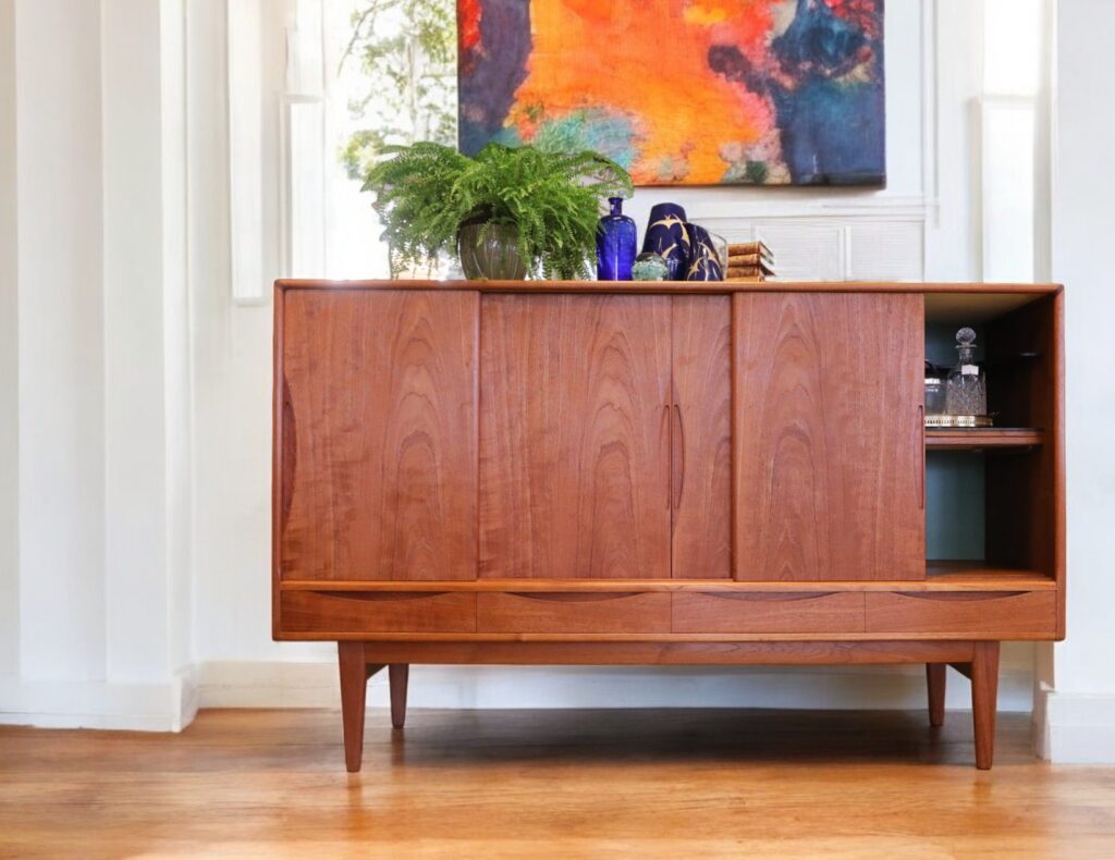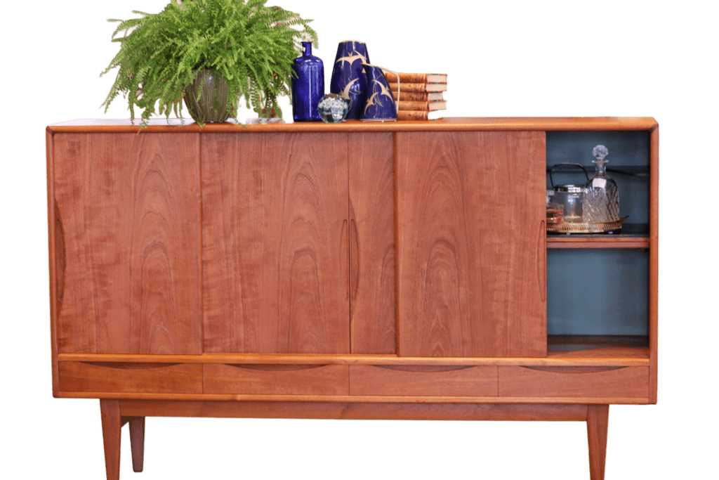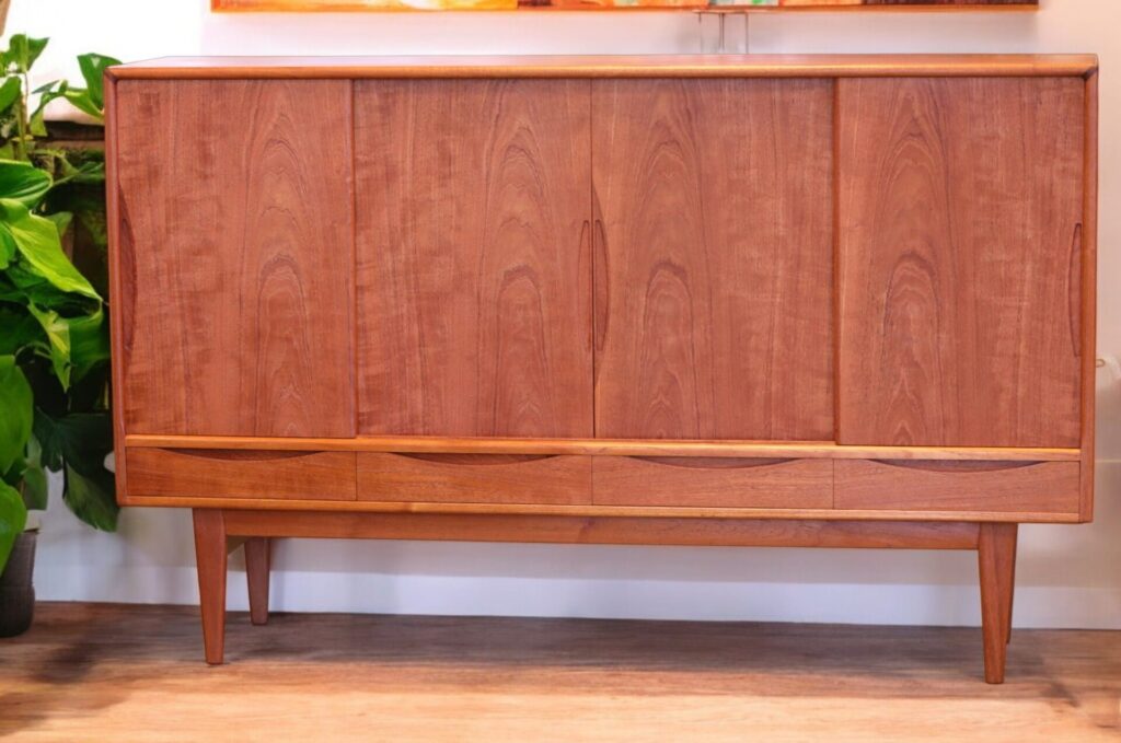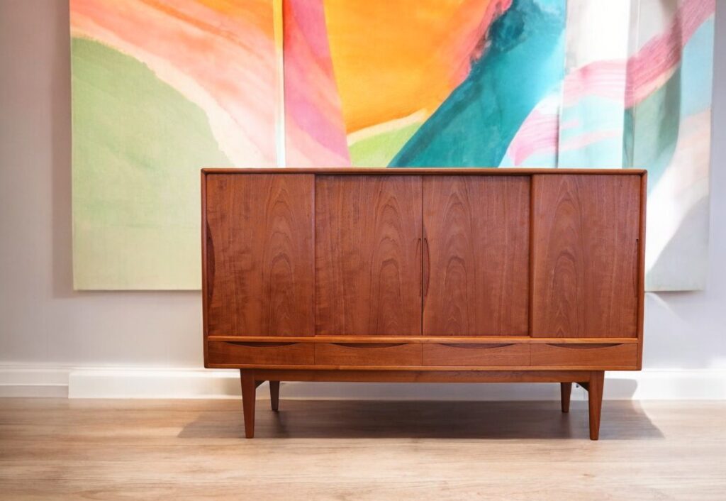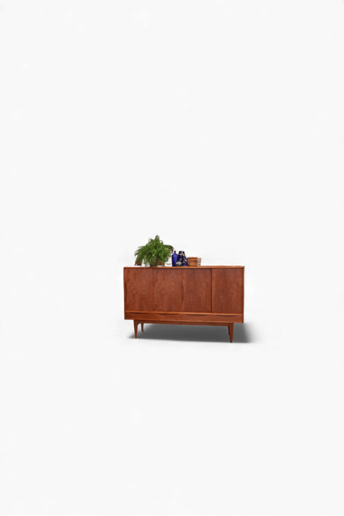 Ett makalöst vackert och smakfullt skåp tillverkat med allra högsta omsorg! Skåpet är danskt och har långa eleganta linjer i en gyllenbrun ton på teaken som dessutom har underbar ådring.