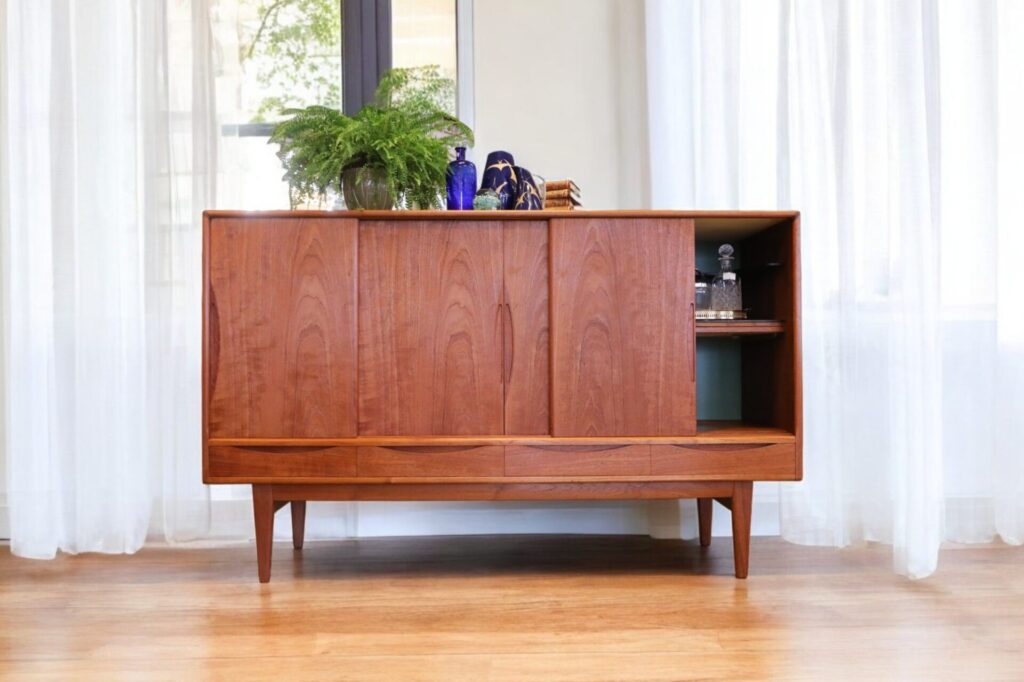 Ett makalöst vackert och smakfullt skåp tillverkat med allra högsta omsorg! Skåpet är danskt och har långa eleganta linjer i en gyllenbrun ton på teaken som dessutom har underbar ådring.