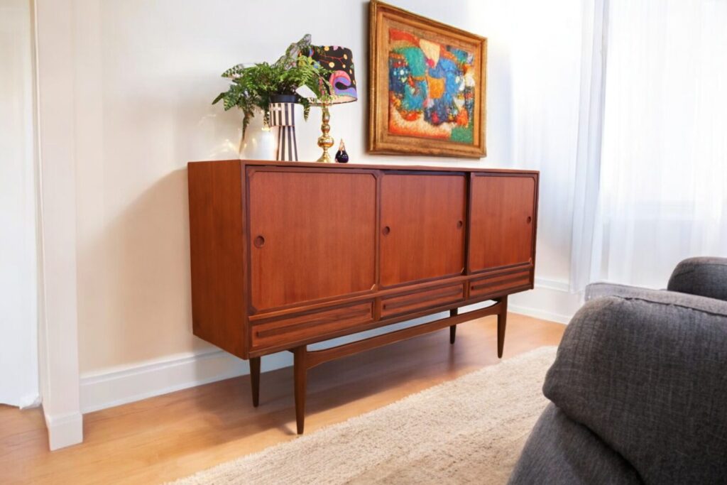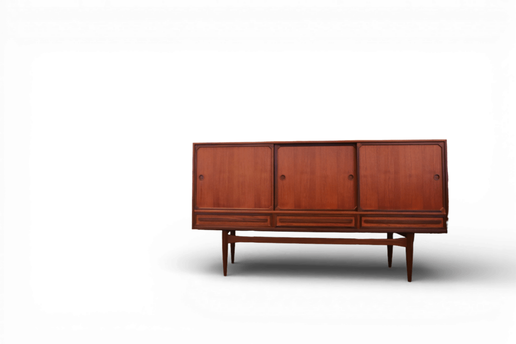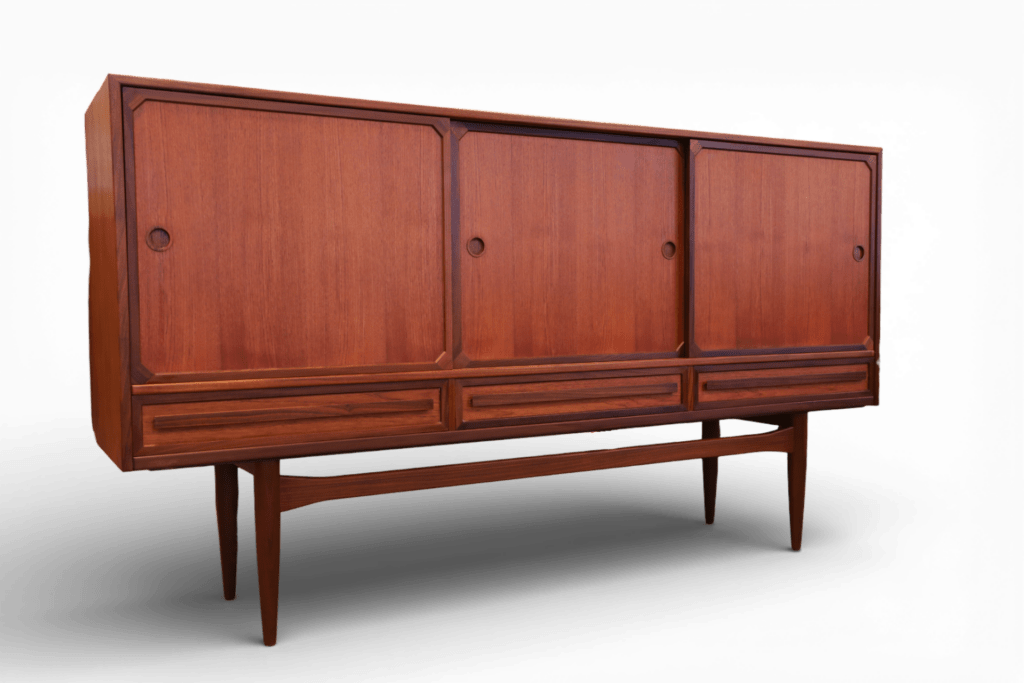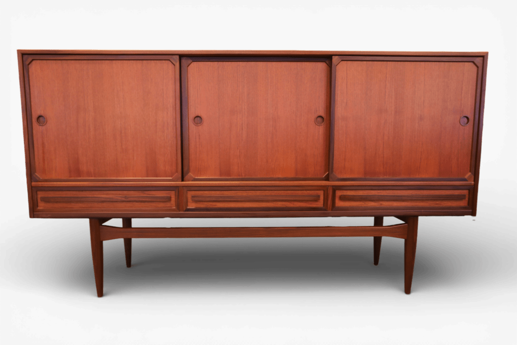 Ett fantastiskt danskt skåp med skjutluckor och lådor i teak och valnöt!