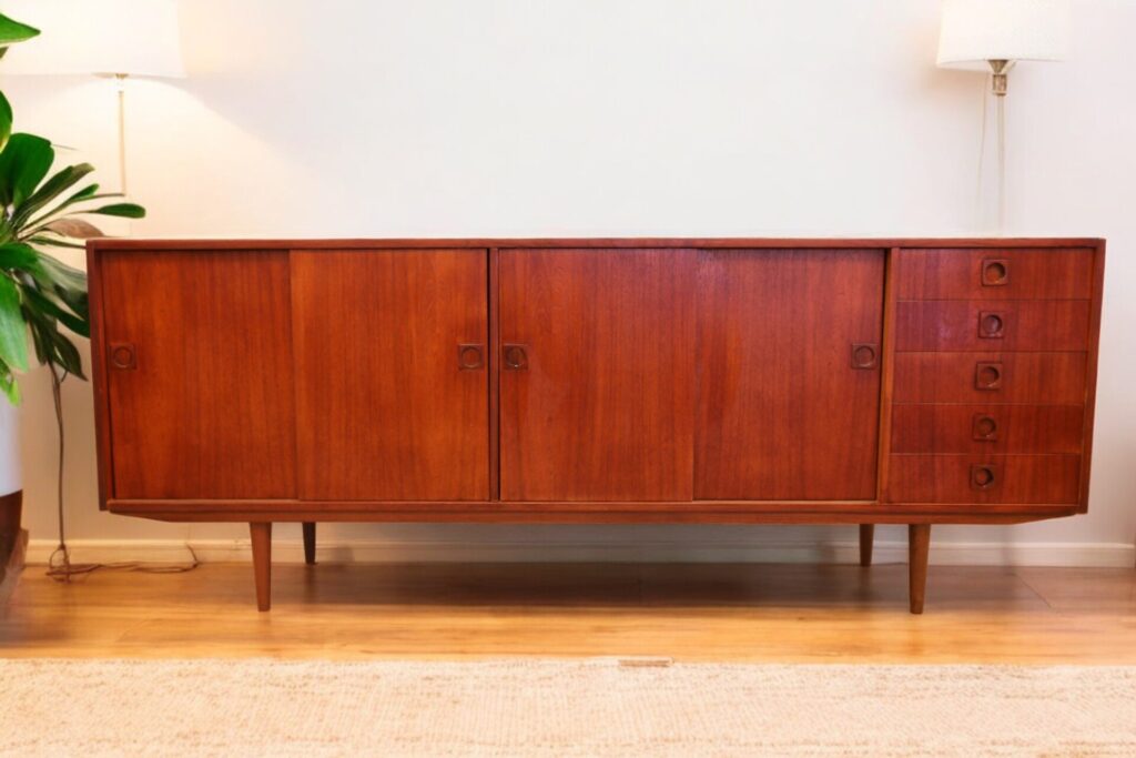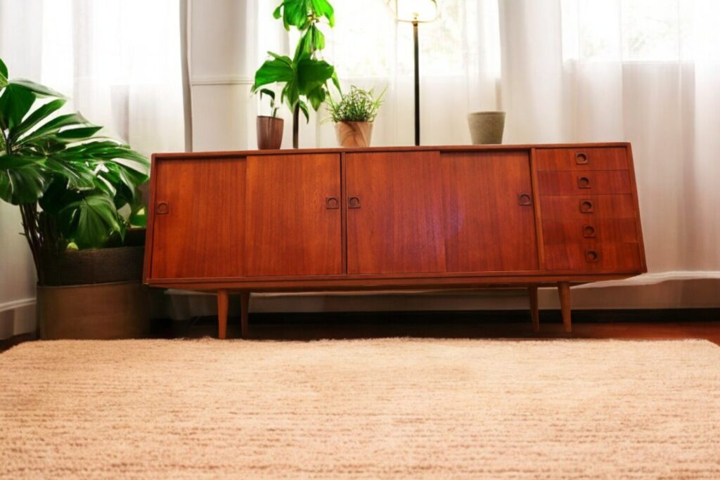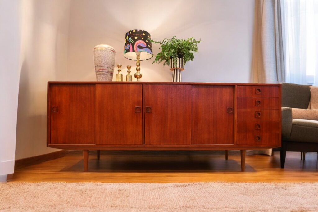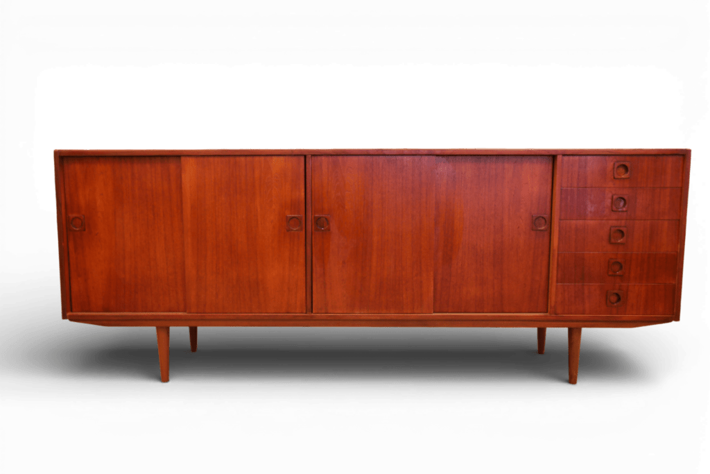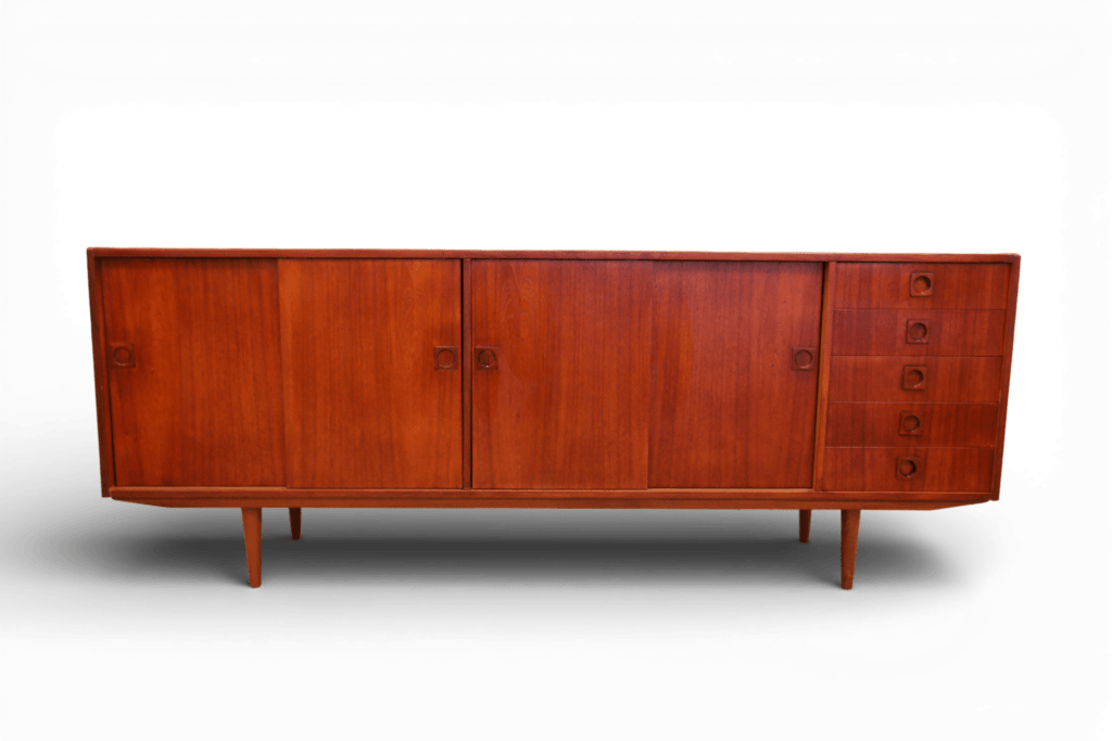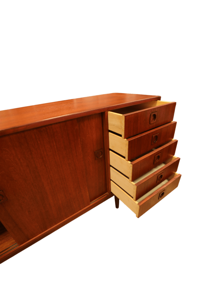 Stilrent sideboard i teak, tillverkat av Farsø Møbler i Danmark.
