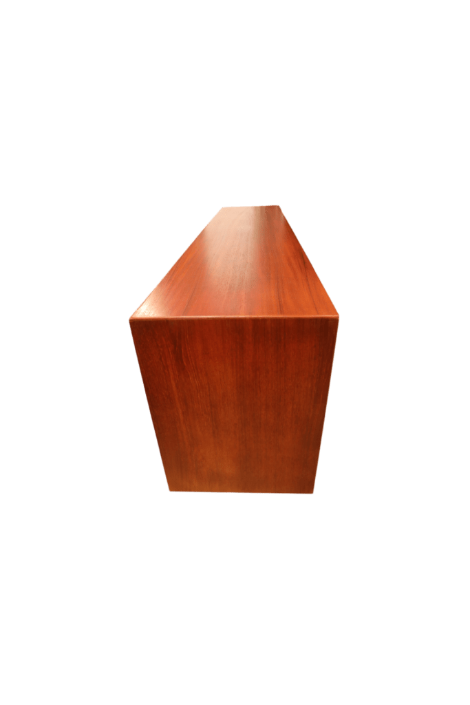 Möbeln är i vacker teak med fyra praktiska skjutluckor. Smäckra, integrerade handtag pryder skjutluckorna och ger en stilren och modern look. Skjutluckorna gör det enkelt och smidigt att få tillgång till innehållet i skåpet, även när det finns begränsat med utrymme runt om.