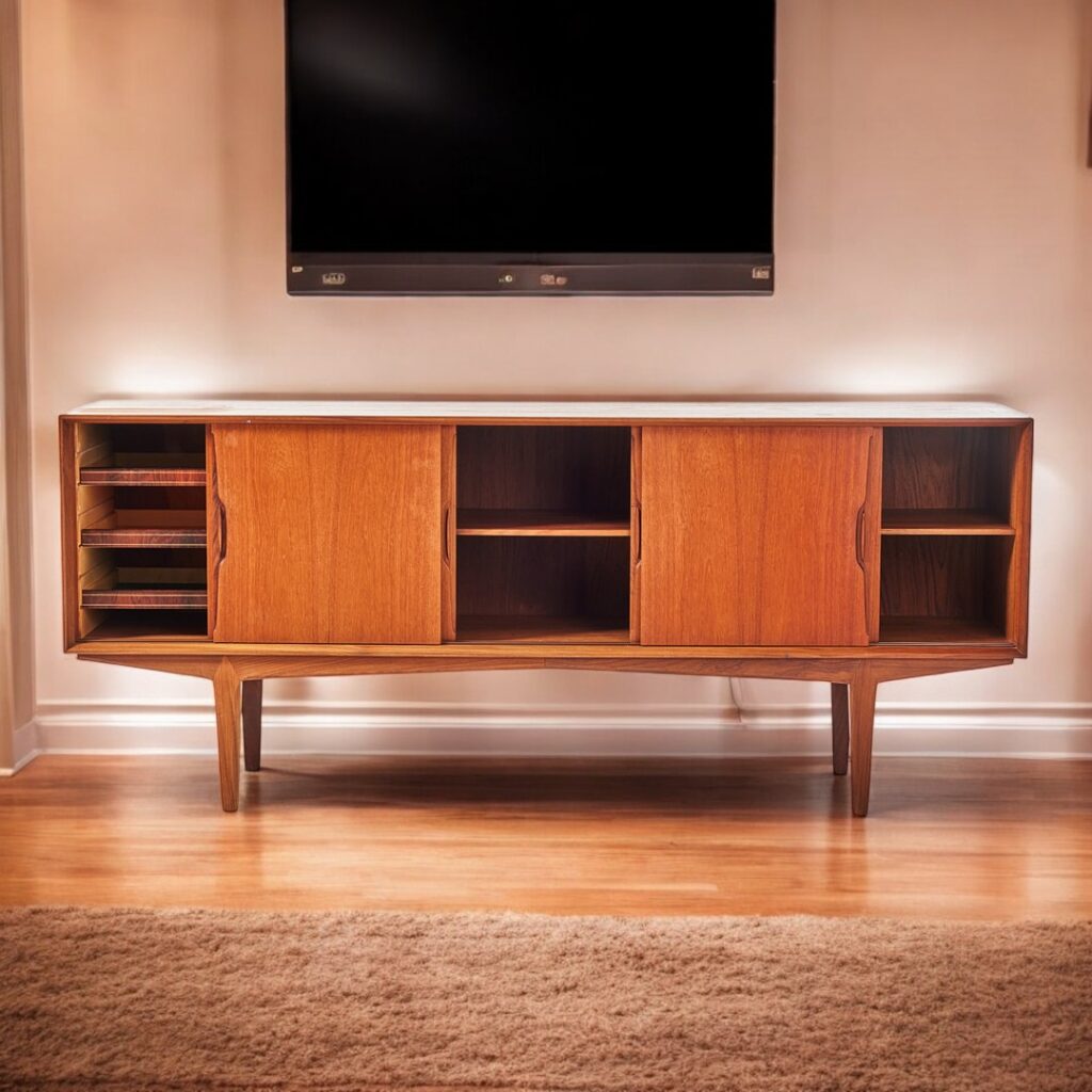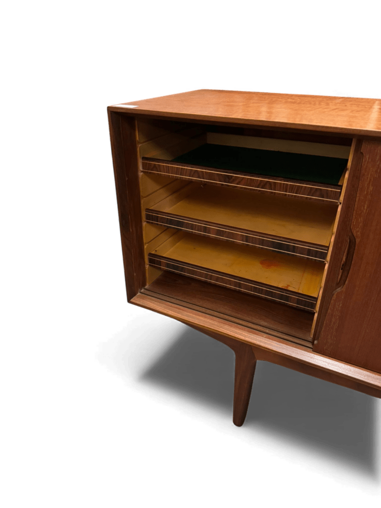 Sideboardet är i modell 42 samt formgivet av Knud Nielsen för Losning Møbelfabrik i Danmark. Sideboardet kombinerar både funktion och estetik på ett sätt som verkligen fångar ens uppmärksamhet och det har absolut inget att tröttna på!